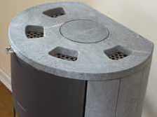 Vollausstattung: Der Bono Xtra mit Specksteinseitenverkleidung (30 mm stark), Specksteindeckel und jeder Menge Wärmespeicher.