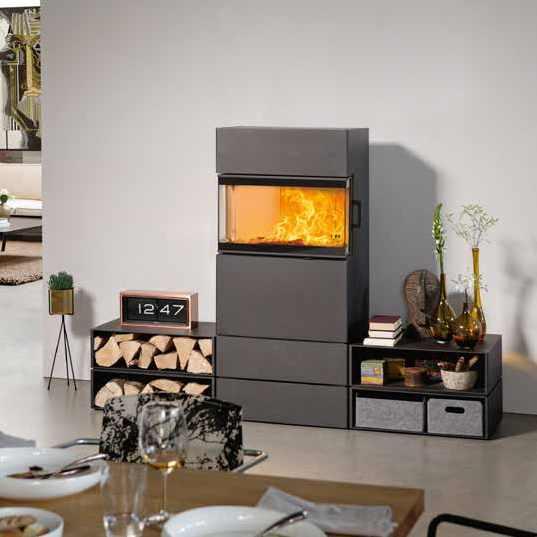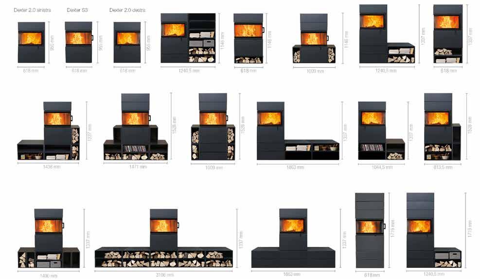 Kennen Sie die Märchen aus 1001 Nacht? Mit ähnlich vielen Kombinationsmöglichkeiten wird Sie der Dexter verzaubern. Sie haben die Wahl zwischen Ecktüre (Dexter 2.0, kurze Seite links oder rechts) oder dreiseitiger Verglasung (Dexter S3). Und die cleveren Modulbausteine, die mit ihrer offenen Seite auch als Holzlagerfach dienen, machen aus dem Dexter ein richtiges Möbelsystem. In die Aufsatzboxen lässt sich sogar noch eine ganze Menge Heat Memory System-Wärmespeichermasse reinpacken.