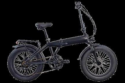E-bike pieghevole con ruote da 20” e telaio in Alluminio • batteria da 48V 10Ah - motore da 250W • sospensioni anteriori • Freni a disco • Cambio shimano 7 velocità.