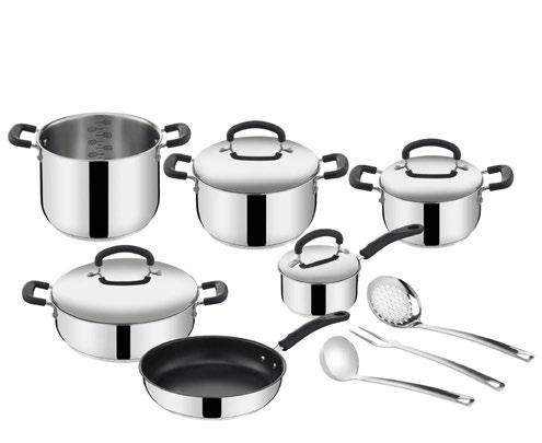 Acciaio inossidabile 18/10 con lucidatura esterna a specchio ed interno satinato • Fondo LAGOSEAL PLUS compatibile con ogni piano cottura