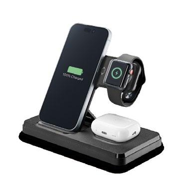 Design pieghevole, ricarica veloce fino a 15W e compatibilità universale per smartphone, Apple Watch e Bluetooth Audio.
