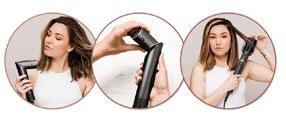 Modellatore ad aria calda 3 in 1 • Potenza 800 Watt • Rivestimento in ceramica: il rivestimento ceramico della griglia frontale della spazzola e dell’arricciacapelli favorisce la distribuzione uniforme del calore e assicura una perfetta scorrevolezza donando luminosità ai capelli • Funzione aria fredda • Regolazione temperatura