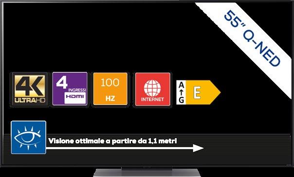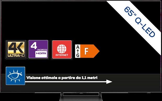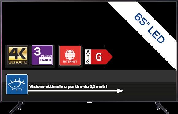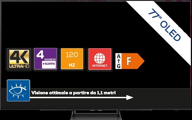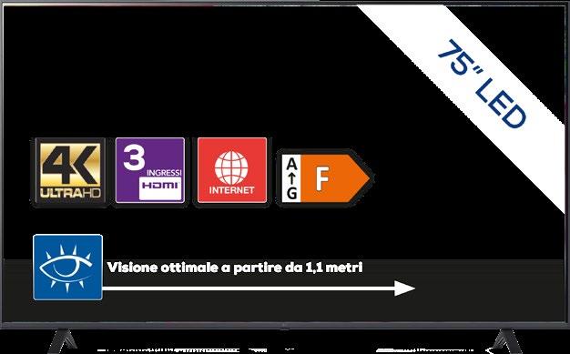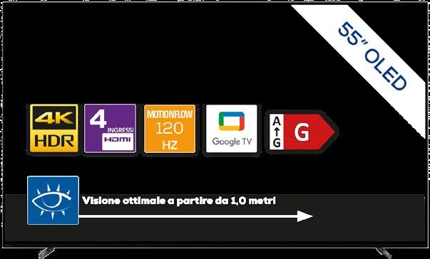 QE77S90CATXZT - SMART TV OLED 77’’ Risoluzione Ultra HD 4K • Full Internet TV • 4 HDMI • Pannello 120hz (Up 144hz) • Connessione Wifi + Ethernet • Sintonizzatore DVB-T2 + DVB-S2 • Slot Common Interface e Common Interface + • Classe energetica F 2699 Prezzo suggerito dal fornitore: 4499 XR-55A80L - OLED SMART TV 55’’ Risoluzione Ultra HD 4K • GOOGLE TV • 4 HDMI • 120 Hz • DLNA • Connessione WiFi + Ethernet • Sintonizzatore DVB-T2 HEVC Main10 + DVB-S2 • Dolby Atmos • Slot Common Interface + • Classe energetica G • 1599 Prezzo suggerito dal fornitore: 2299 OLED55B36LA - SMART TV OLED 55’’ Risoluzione Ultra HD 4K • Full Internet TV • 4 HDMI • Pannello 100 Hz Nativo • Connessione WiFi + Ethernet • Sintonizzatore DVB-T2 HEVC + DVB-S2 • Slot Common Interface + • Certificato LaTivu 4K • Classe energetica G 1199 Prezzo suggerito dal fornitore: 1999 QE65Q70CATXZT - Q-LED SMART TV 65’’ Risoluzione Ultra HD 4K • Full Internet TV • 4 HDMI • Sintonizzatore DVB-T2 + DVB-S2 • Dolby Atmos • Slot Common Interface + • Certificato LaTivu 4K • Classe energetica F 1099 Prezzo suggerito dal fornitore: 1599 75UR78006LK - SMART TV LED 75’’ Risoluzione Ultra HD 4K • Full Internet TV • 3 HDMI • Connessione WiFi + Ethernet • Sintonizzatore DVB-T2 HEVC + DVB-S2 • Slot Common Interface + • Classe energetica F • 899 Prezzo suggerito dal fornitore: 1399 65U69KQ - SMART TV Q-LED MINILED 65” Risoluzione Ultra HD 4K • Full Internet TV • 4 HDMI • Connessione WiFi + Ethernet • Sintonizzatore DVB-T2 HEVC + DVB-S2 • Slot Common Interface • Certificato LaTivu 4K • Classe energetica F 799 Prezzo suggerito dal fornitore: 1299 55QNED826RE - Q-NED MINILED SMART TV 55’’ Risoluzione Ultra HD 4K • Full Internet TV • 4 HDMI • 100 Hz • HFR 4K 120 fps (HDMI) • Connessione WiFi + Ethernet • Sintonizzatore DVB-T2 HEVC + Satellitare S2 • Slot Common Interface + • Classe energetica E 699 UE65CU7170UXZ - SMART TV LED 65’’ Risoluzione Ultra HD 4K • Full Internet TV • 3 HDMI • Connessione WiFi + Etherneth • Sintonizzatore DVB-T2 + Satellitare S2 • Slot Common Interface e Common Interface + • Certificato LaTivu 4K • Classe energetica G 699 Prezzo suggerito dal fornitore: 949 Volantino valido nei Punti Vendita Bruno SpA dal 28 settembre all’11 ottobre 2023. Salvo esaurimento scorte. Le foto e le descrizioni dei prodotti sono puramente indicative. Salvo errori tipografici. Vedi note finanziarie in ultima pagina. TASSO ZERO TAN FISSO 0% TAEG 0% IN 10 MESI