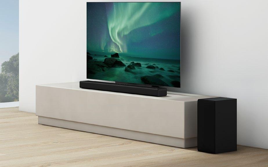 Soundbar a 2.1 canali con subwoofer wireless Potenza in uscita 330W, S-Force PRO Front Surround con Dolby® Digital per un audio surround cinematografico, collegamento facilitato con ingresso HDMI ARC e ottico, dialoghi chiari e nitidi con X-Balanced Speaker, comoda interfaccia con display OLED.