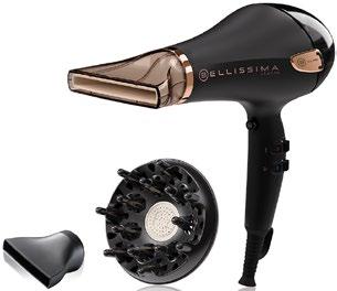 Asciugacapelli professionale con potenza 2300 Watt • Tecnologia a ioni e ceramica • 3 temperature e 2 velocità • Diffusore e concentratore • Funzione turbo • Tecnologia silenziosa • Rispetta, protegge e idrata i capelli mentre li asciuga