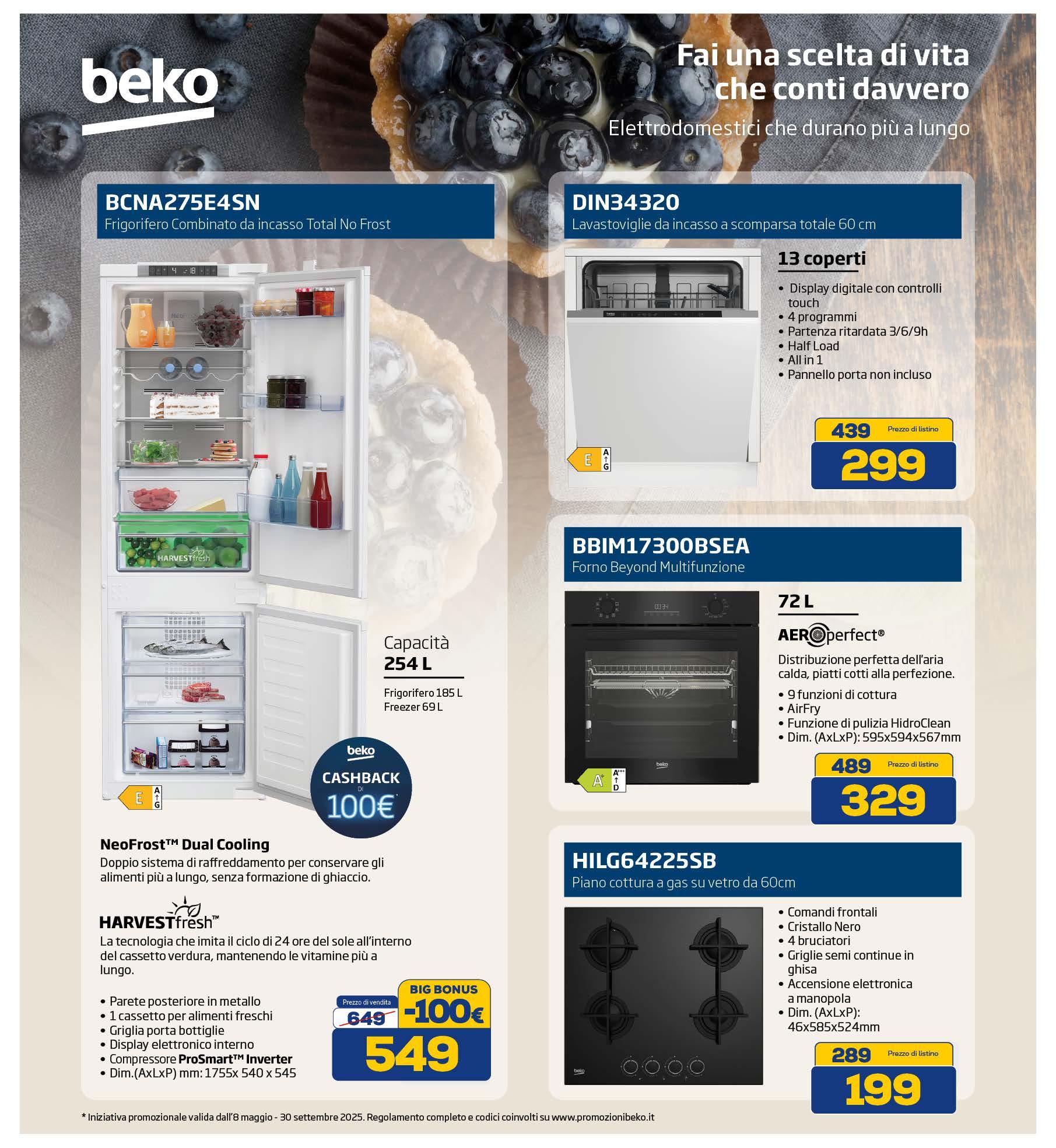 • Total No Frost: per non sbrinare mai più il congelatore e mai più gocce di acqua nel frigorifero.