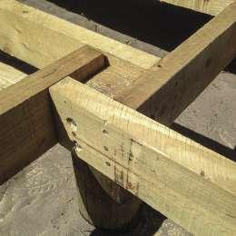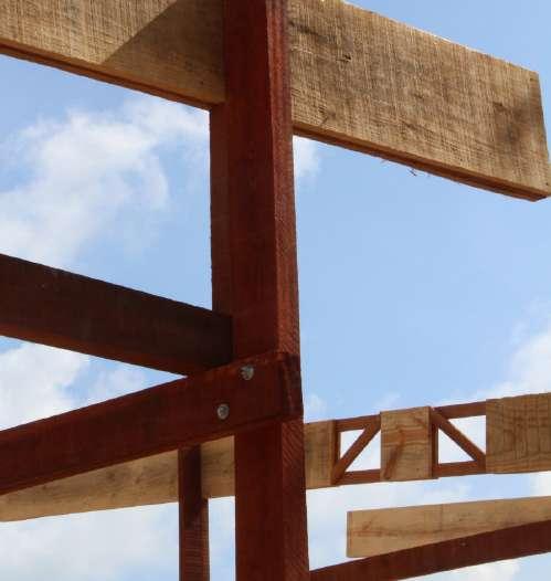 Encontro das vigas principais nos pilares, sistema de encaixe que assegura a estructura.