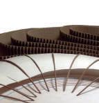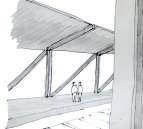 Pilares curvos se fixam às vigas que descarregam os esforços sobre os pilares de 2x5”.