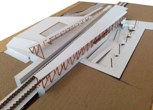 Projecto: Estação de metro. A proposta procura dar solução à acessibilidade universal através de rampas de acesso. Tem uma praça de carácter público que faz a transição para o interior da estação. Uma vez dentro, aparece o vestíbulo ou “hall” que se encontra num nível inferior ao metro e unifica as circulações para os cais desde um único ponto. O vestíbulo tem orientação a norte, onde se cria um espaço de permanência mais comprido e protegido.