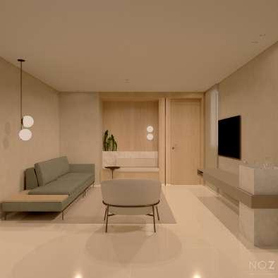 Projeto arquitetônico de interiores. O projeto partiu da escolha de uma paleta neutra de cores, usada trazer sensação de amplitude e sofisticação aos ambientes. Na sala, a existência de uma planta baixa recortes e o posicionamento da porta principal de acesso ao apartamento guiaram o layout, que com cos elementos se conecta em todos os pontos e favorece o estar. Na suíte, as grandes dimensões dividi-la em dois ambientes confortáveis: quarto e closet; trazendo conforto e praticidade ao uso