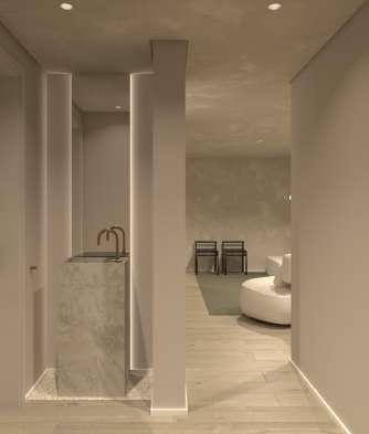 Posteriormente à apresentação e aprovação do TCC, desenvolveu-se o projeto de interiores de algumas das áreas comuns e de um dos quartos padrão do edifício. Assim como na concepção do prédio propriamente dito, utilizou-se muito de cores, materiais e texturas naturais que ajudam à remeter o conceito e trazem aconchego aos ambientes, bem como a iluminação que ocorre na maioria das vezes indiretamente e aparece pontualmente para dar destaque, propiciando a longa permanência nesses locais.