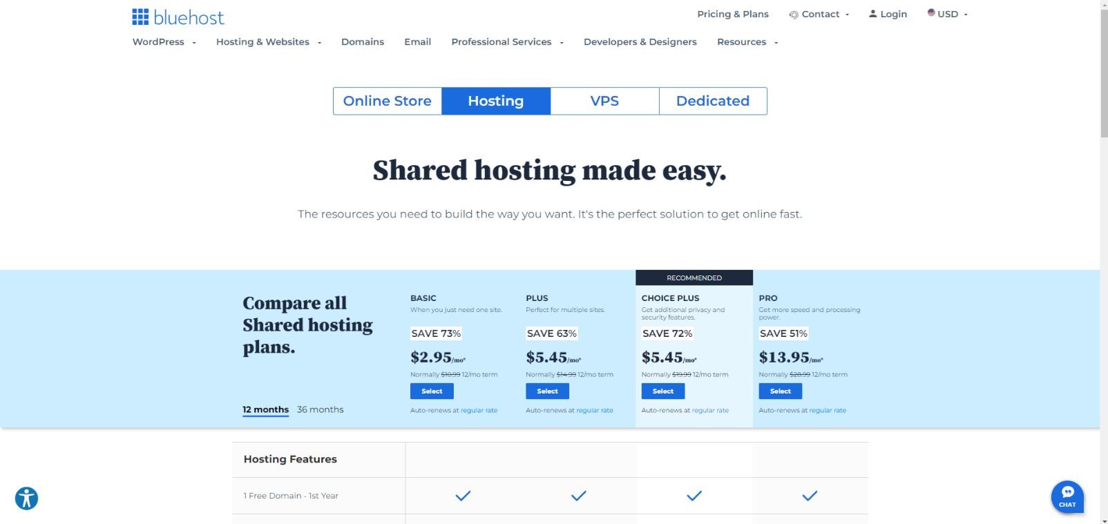 Za web poslužitelja ovoga projekta odabrali smo Bluehost koji nudi nekoliko opcija. Prednost