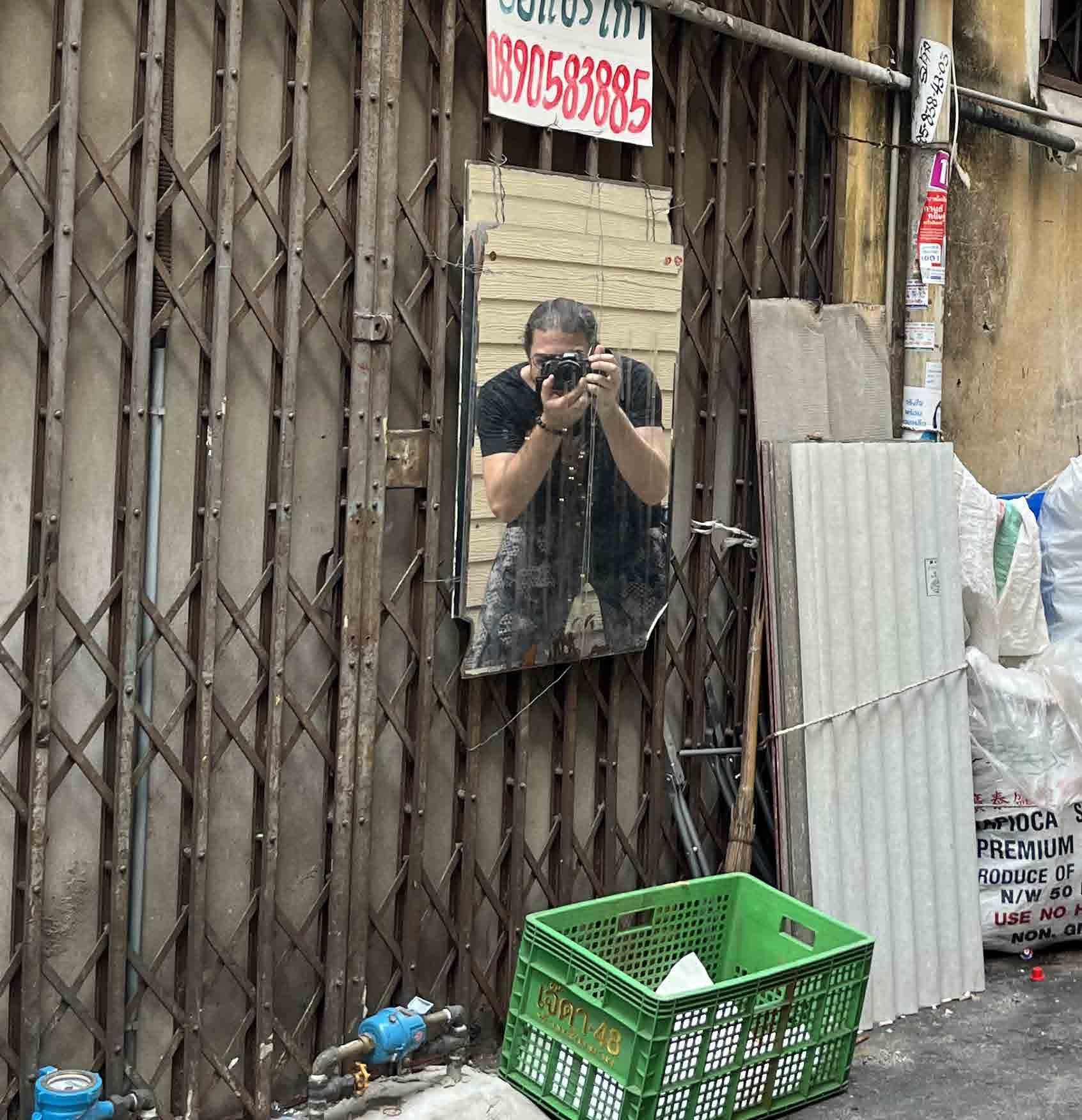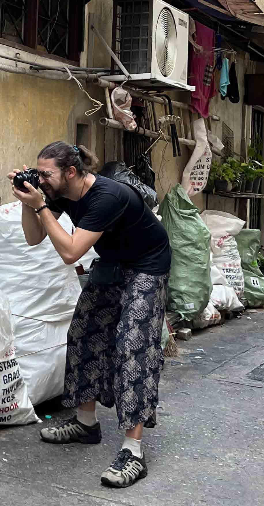 Este sou eu, fotografando em uma viela estreita de Bangkok, na Tailândia. Durante 6 meses, a rotina foi andar todos os dias com minha câmera a tira-colo, pronto para registrar o que me chamasse a atenção.
