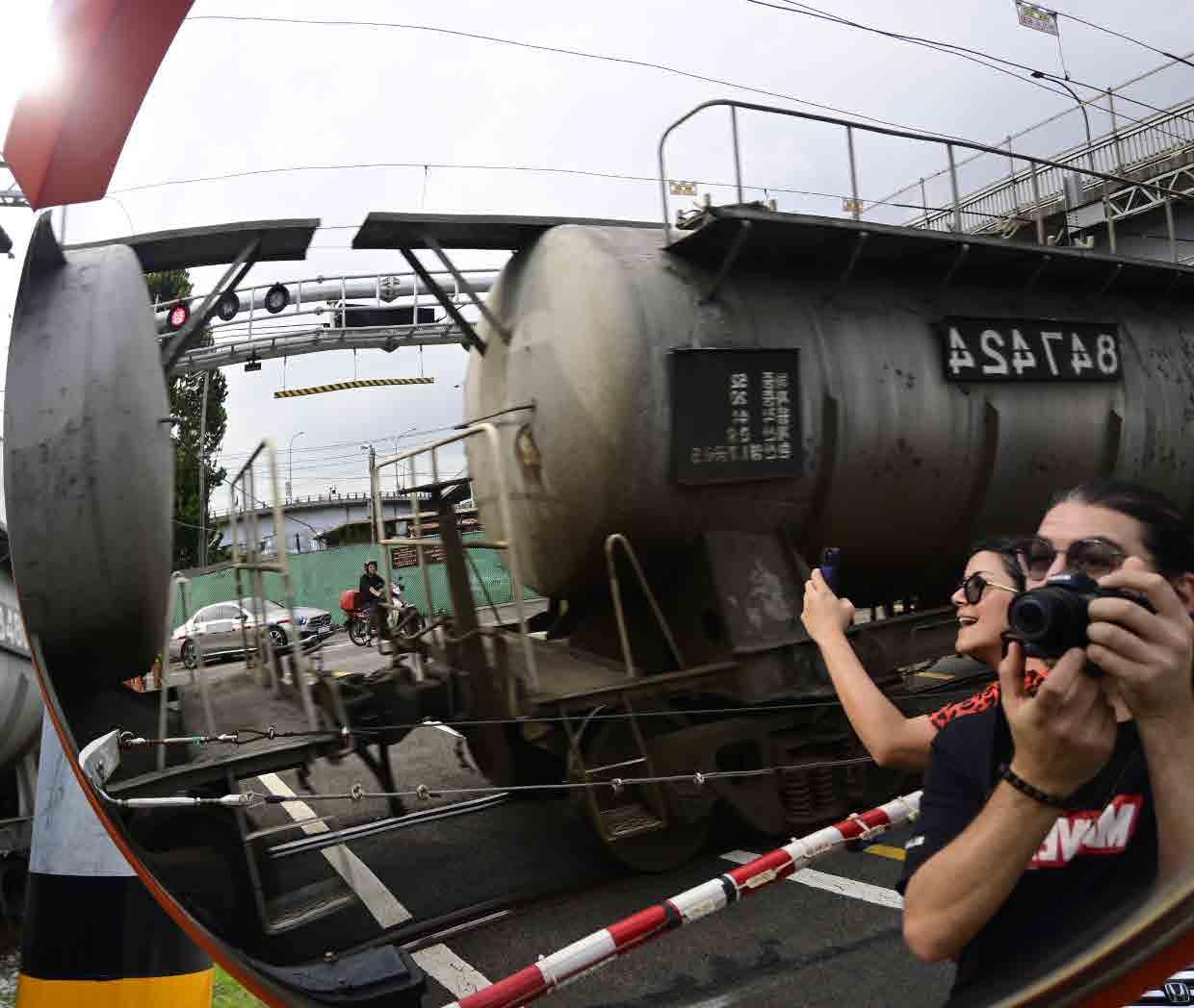 Eu e minha companheira Fernanda esperando o trem passar. Em algum lugar de Seoul, Coréia.