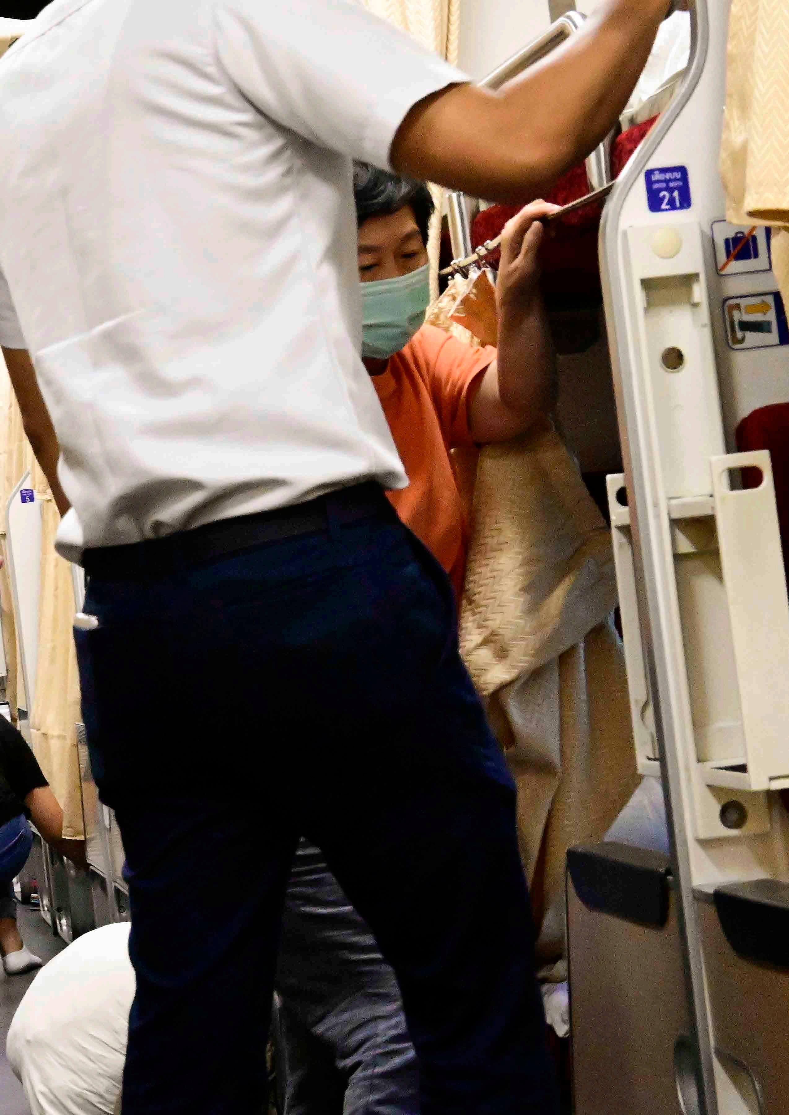 Movimentação de passageiros ao amanhecer no interior do trem noturno que liga Bangkok a Chiang Mai.