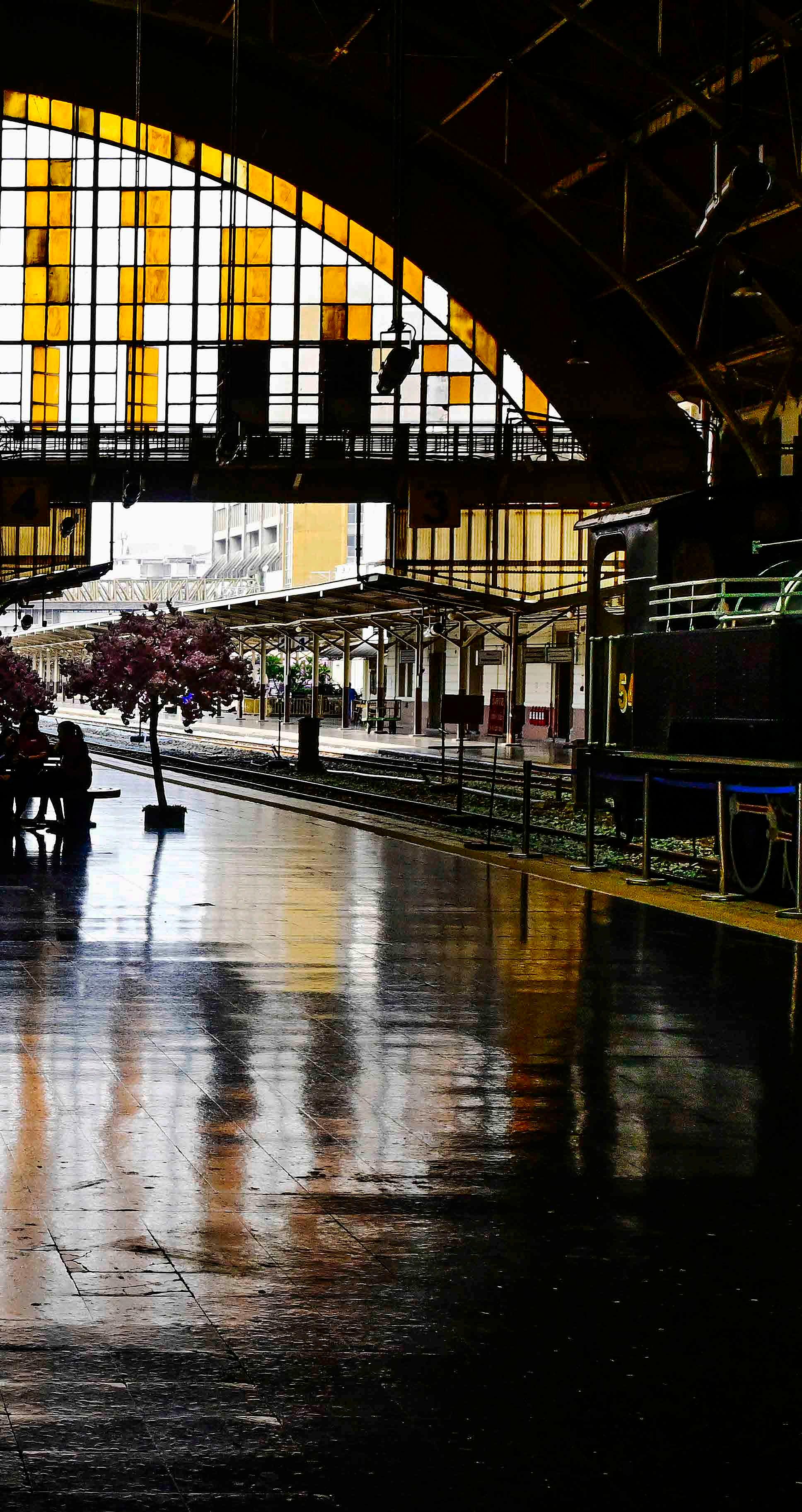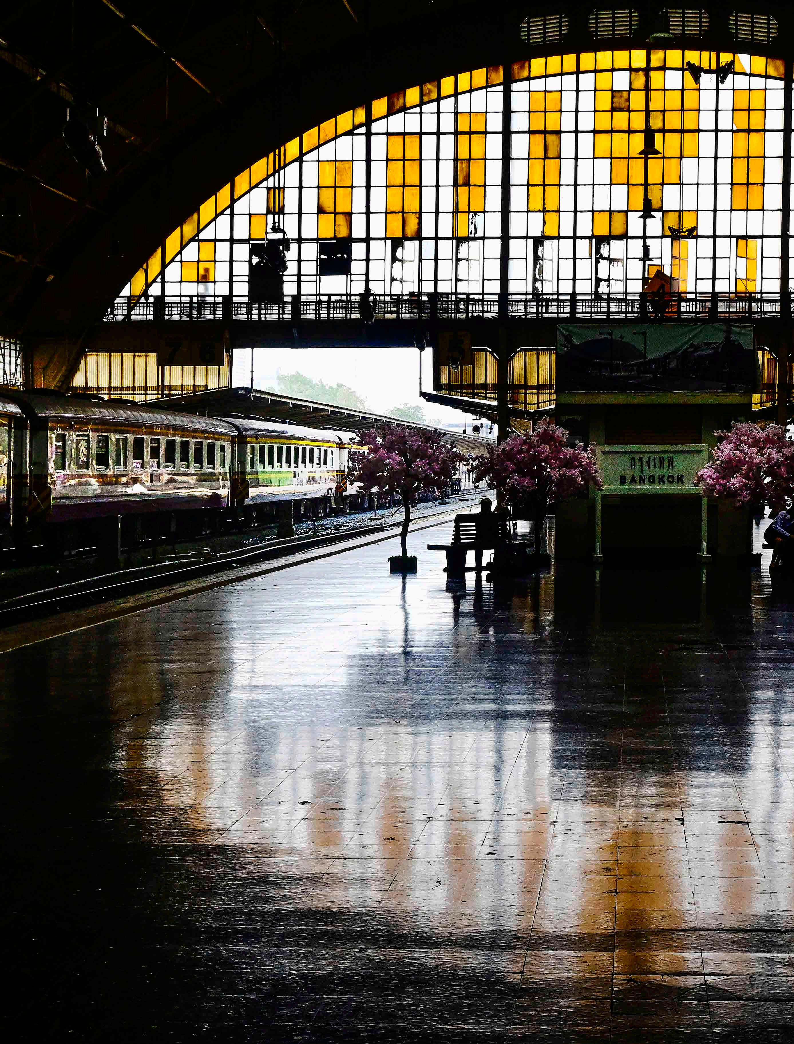 A elegante plataforma da antiga estação central de trens de Bangkok, Hua Lamphong.