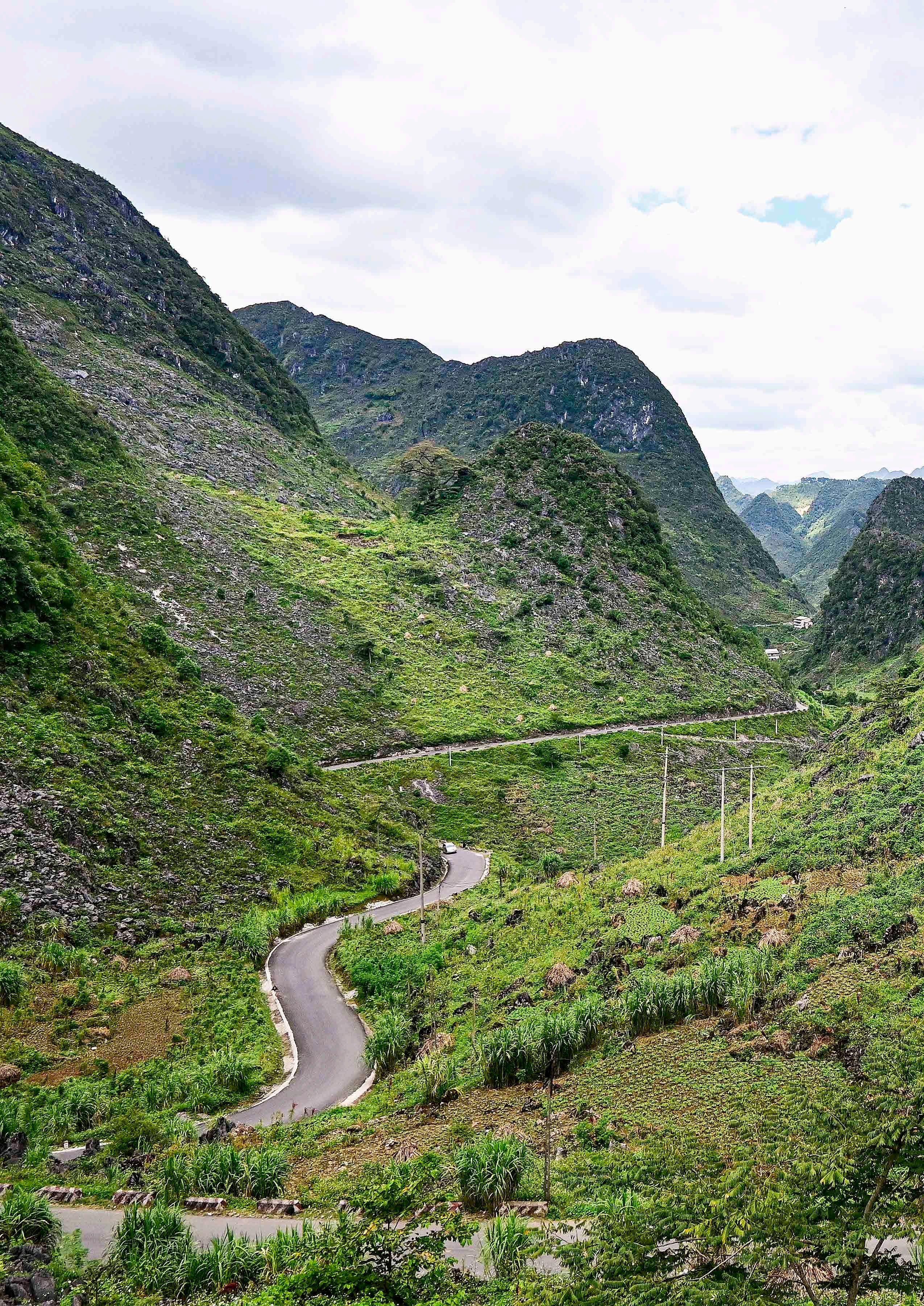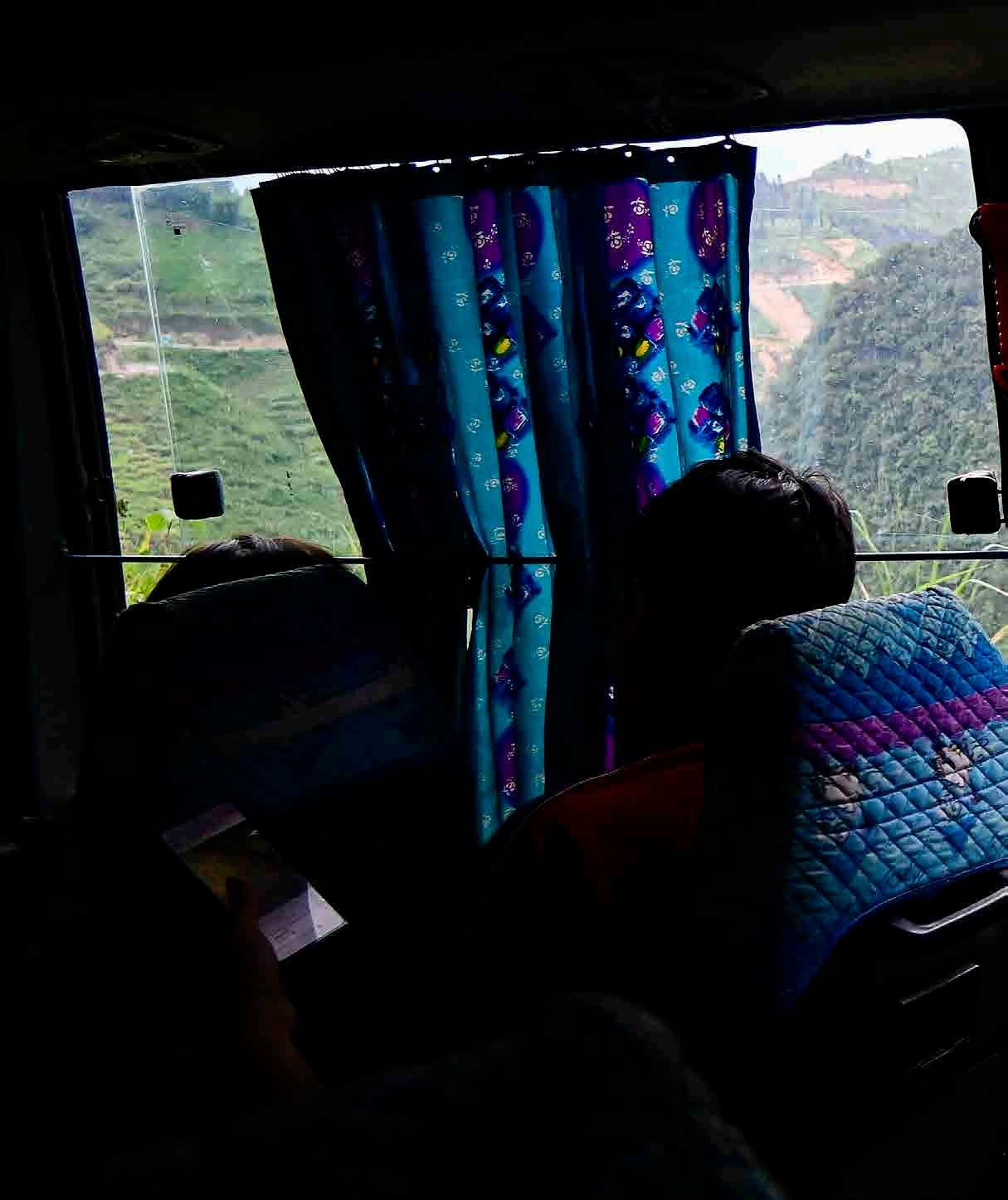 Viagem entre Ha Giang e Dong Van, no norte do Vietnã. Atravessar regiões ermas significa na maioria das vezes fazer viagens muito longas por estradas apertadas e sinuosas, compensado pelas paisagens muitas vezes deslumbrantes.