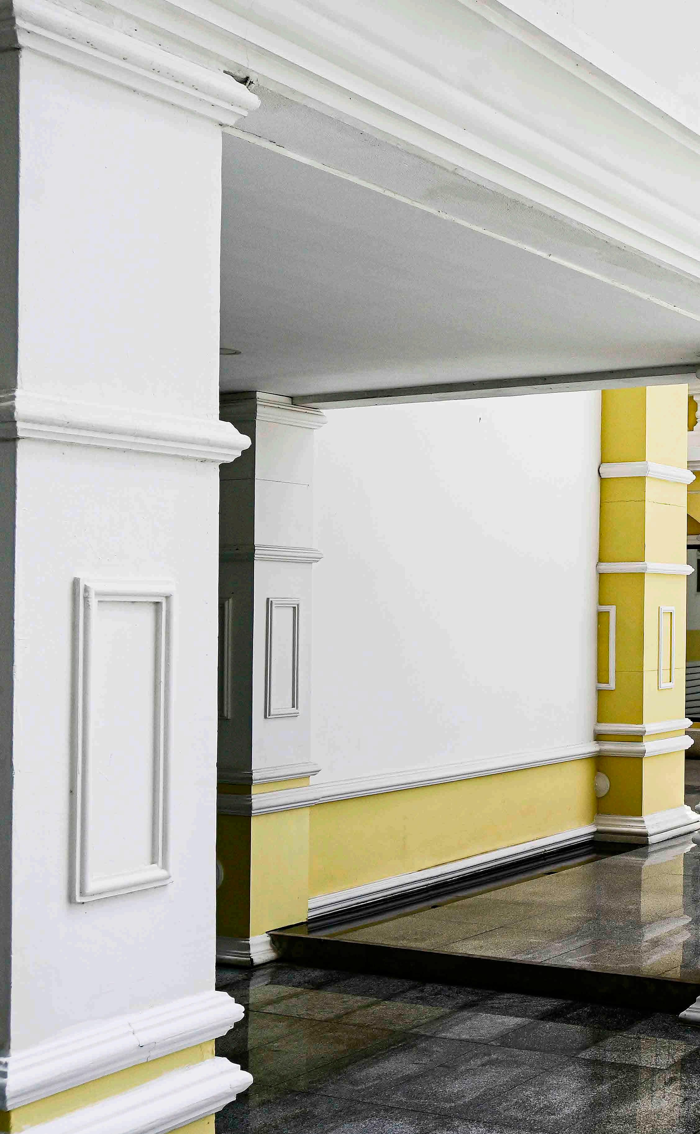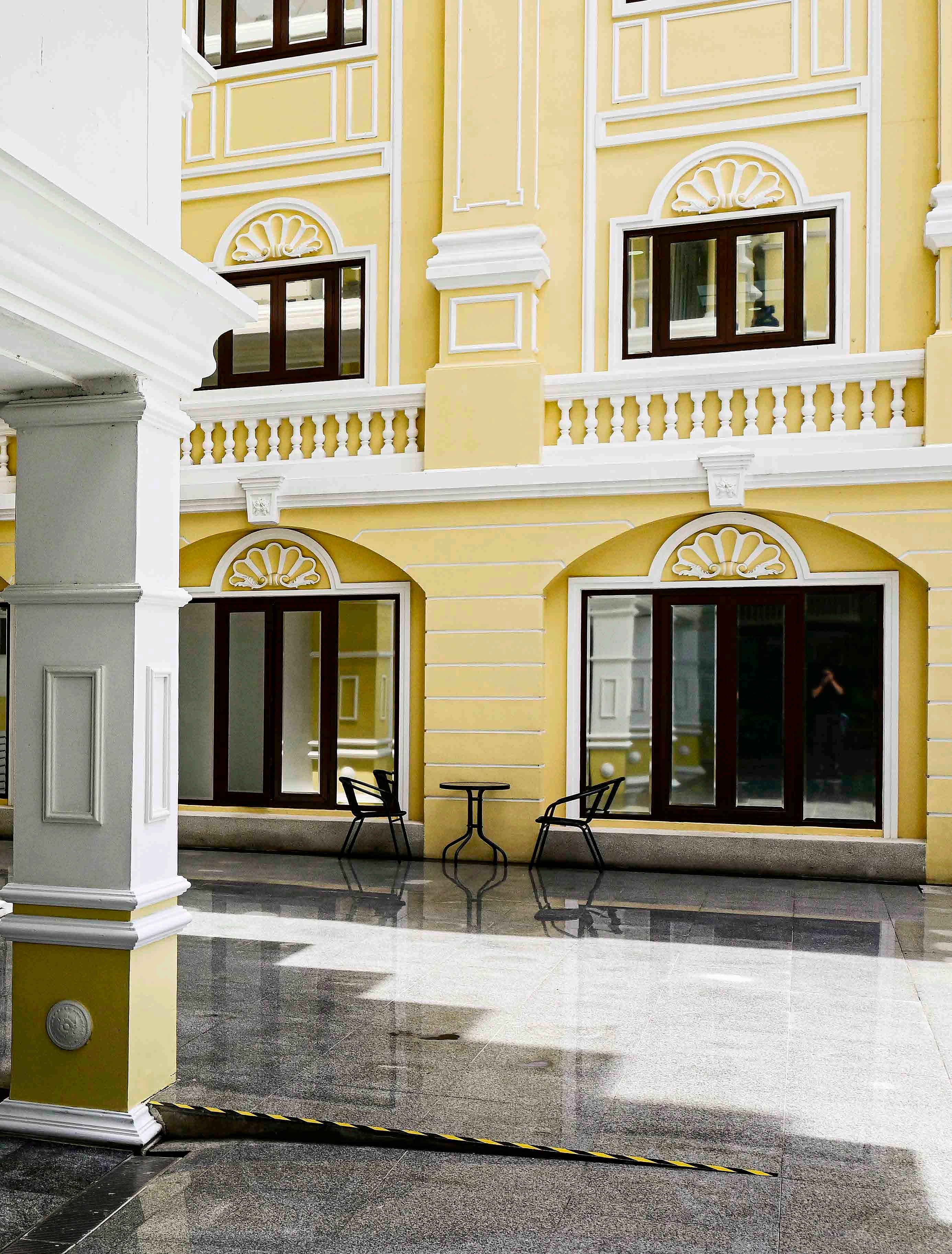 tentativamente neoclássica em um edifício junto ao Rio Chao Phaya, em Bangkok.
