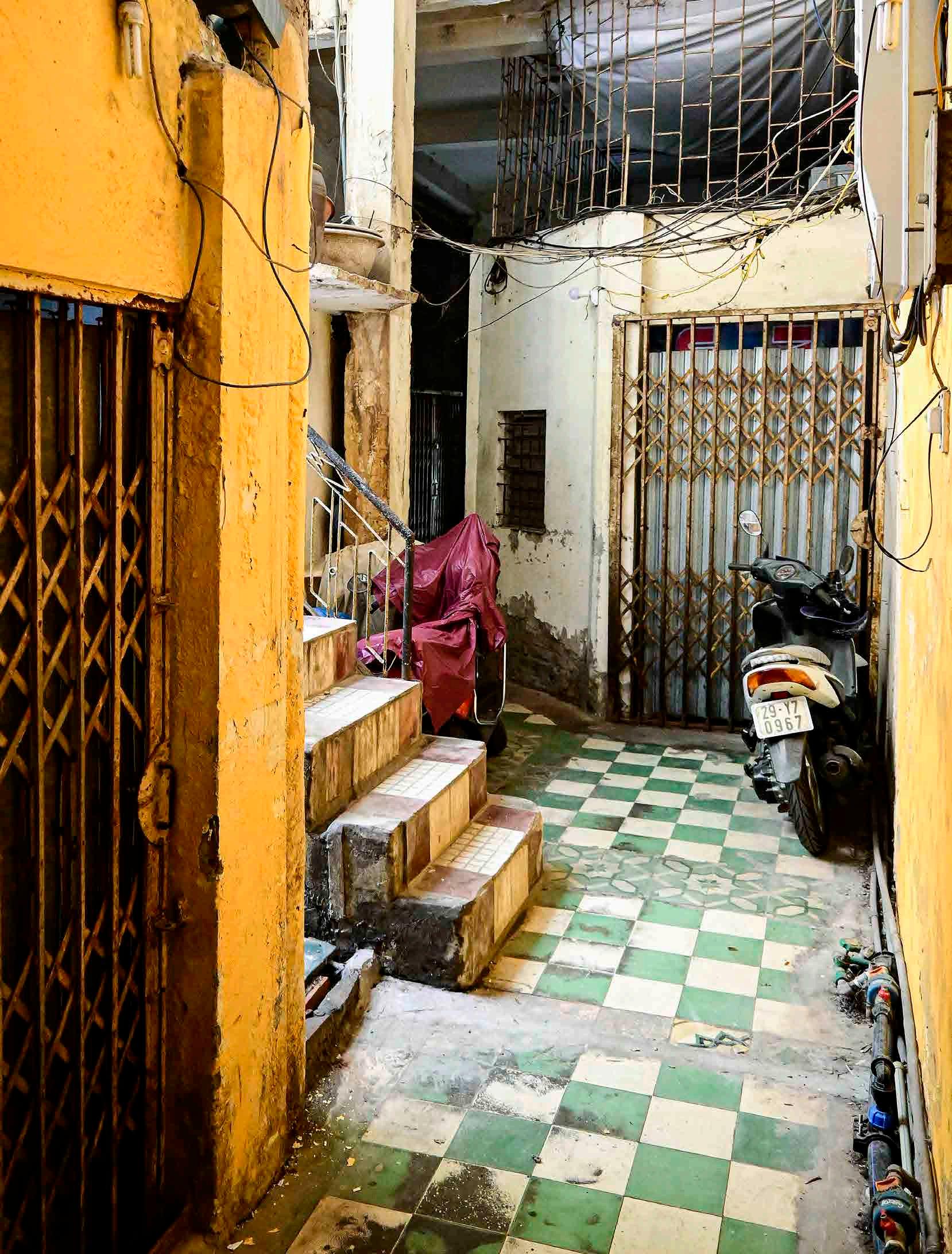 Assim como a gente observa muitas diferenças no lado de fora, o lado de dentro das coisas tem características muito distintas dependendo do tipo de lugar. À esquerda, as escadarias de um moderno centro de design no coração de Seoul. Acima, a entrada de um cortiço apertado no centro histórico de Hanoi.