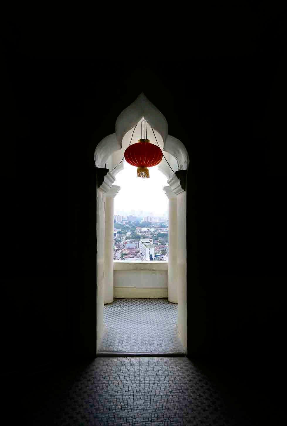 Um dos vários mirantes no alto da pagoda principal do templo Kek Lok Si, em Georgetown, Malásia.