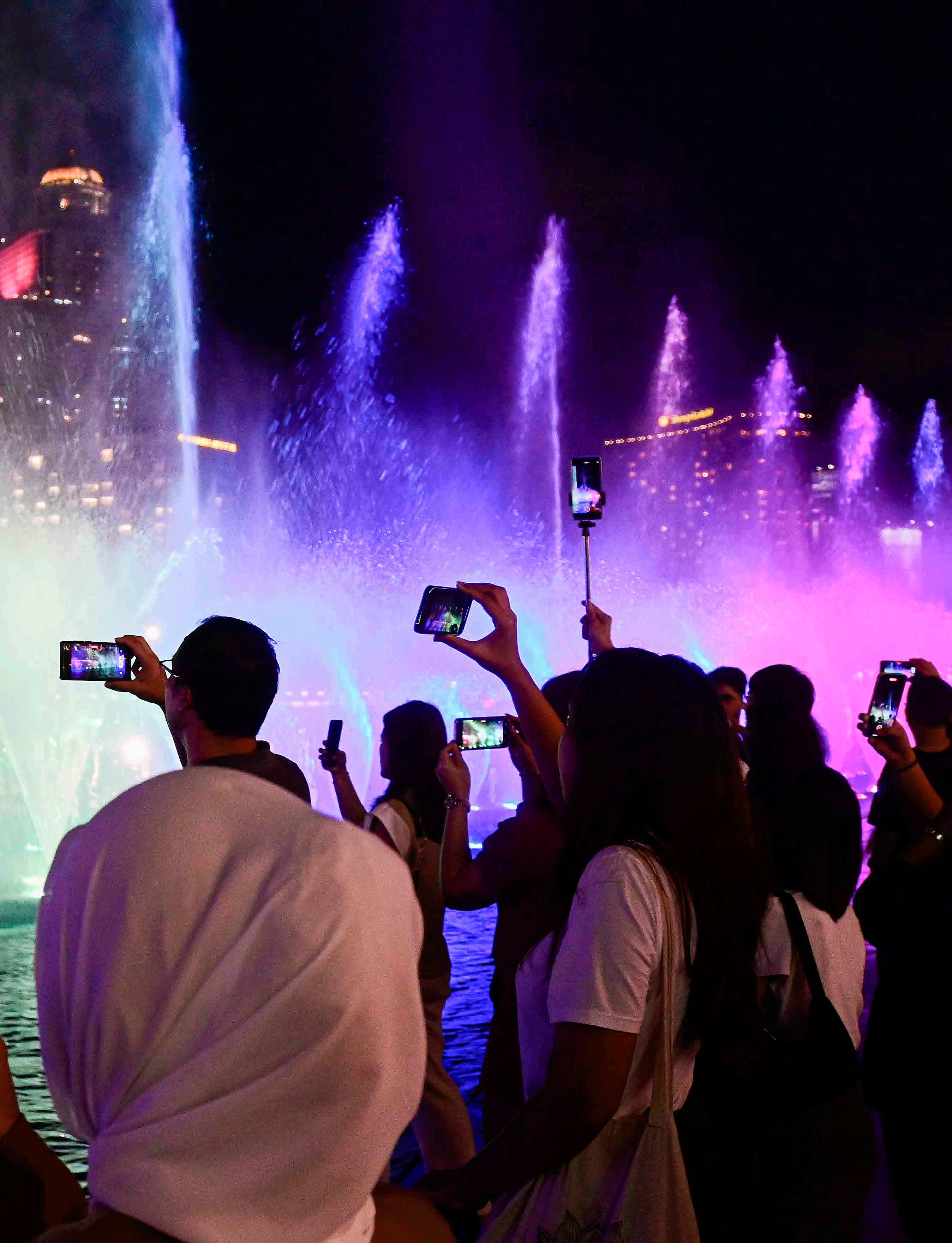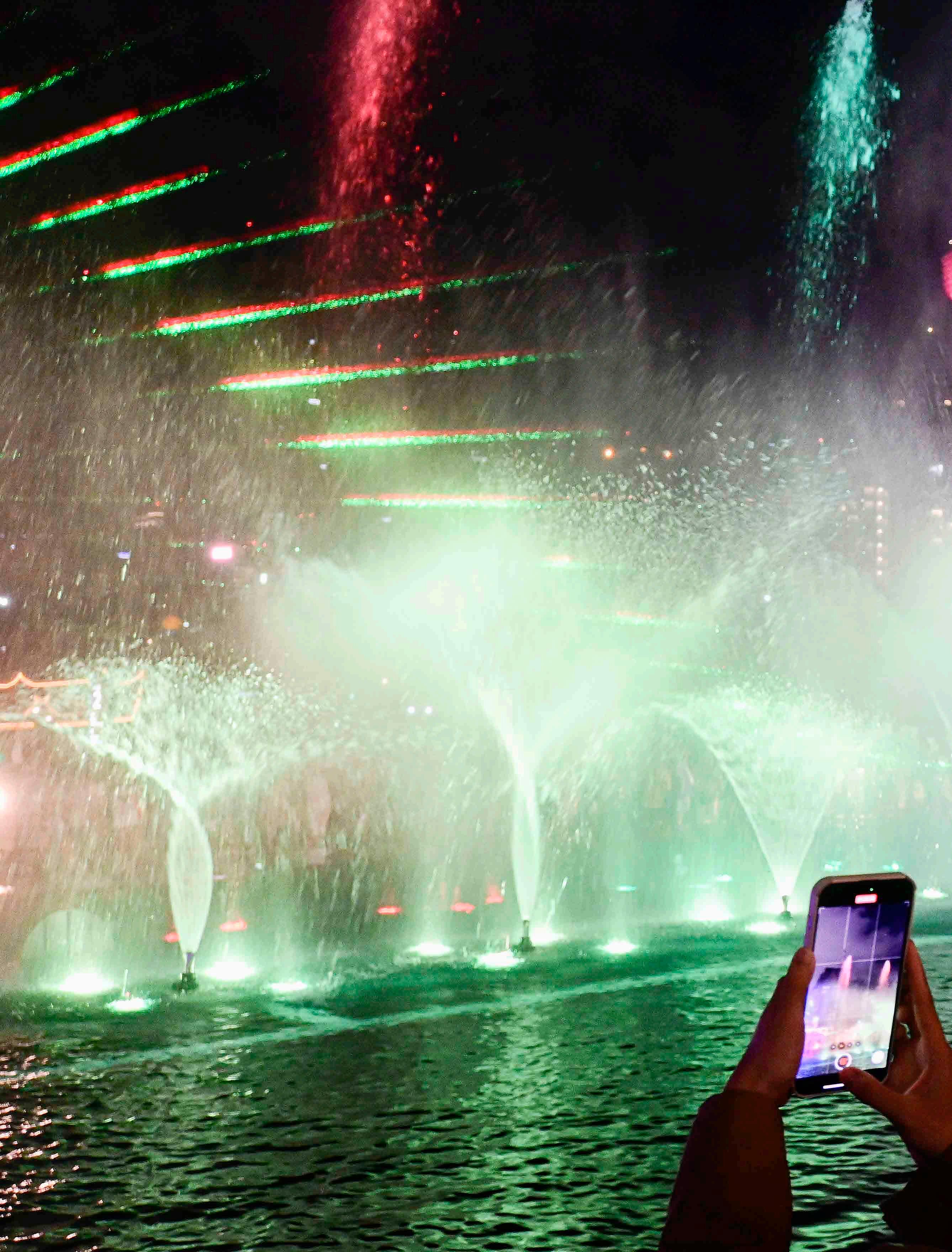 Espetáculo de luzes e água, em um tipo de atração muito comum em cidades da Ásia. Os chafarizes em movimentos sincronizados dão forma aos jatos d’água, e tudo é iluminado por projeções coloridas e acompanhado de temas musicais.