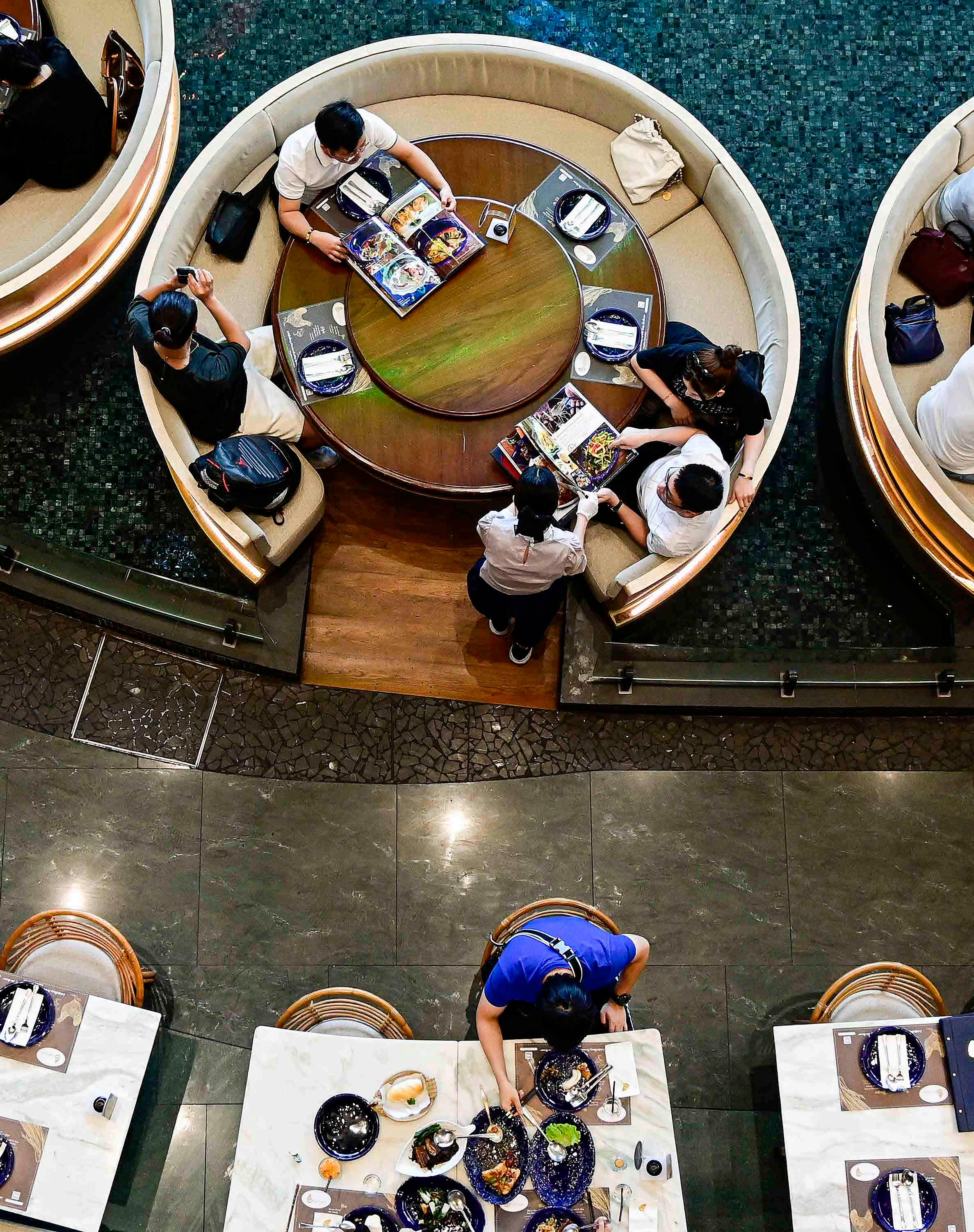 Diferente do movimento rápido e caótico da comida de rua, os restaurantes podem ser centros interessantes de apreciação da culinária, em outro estilo. Um diferencial sendo o ambiente, em que a arquitetura, decoração, e outros elementos visuais passam a fazer parte da experiência gastronômica.