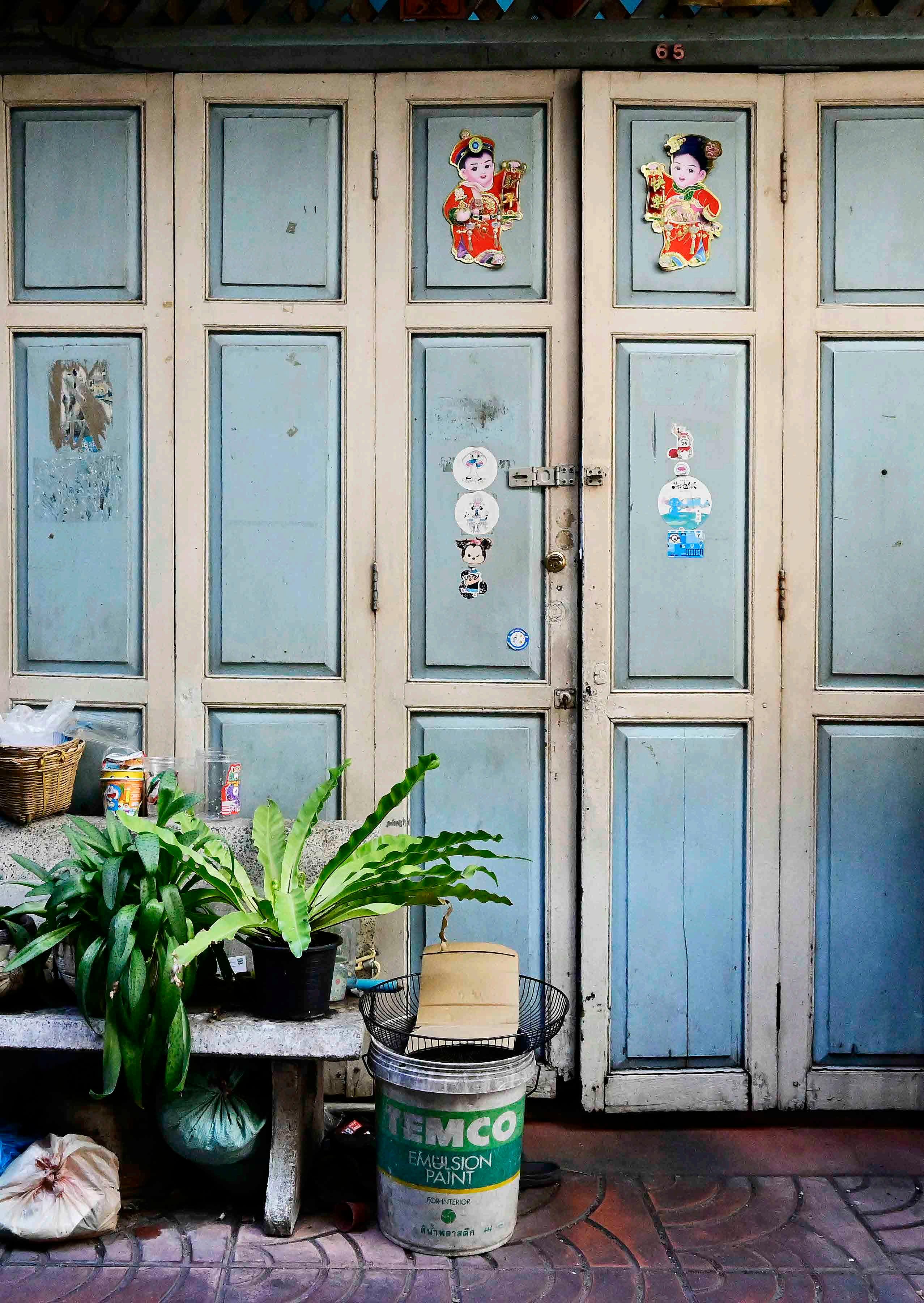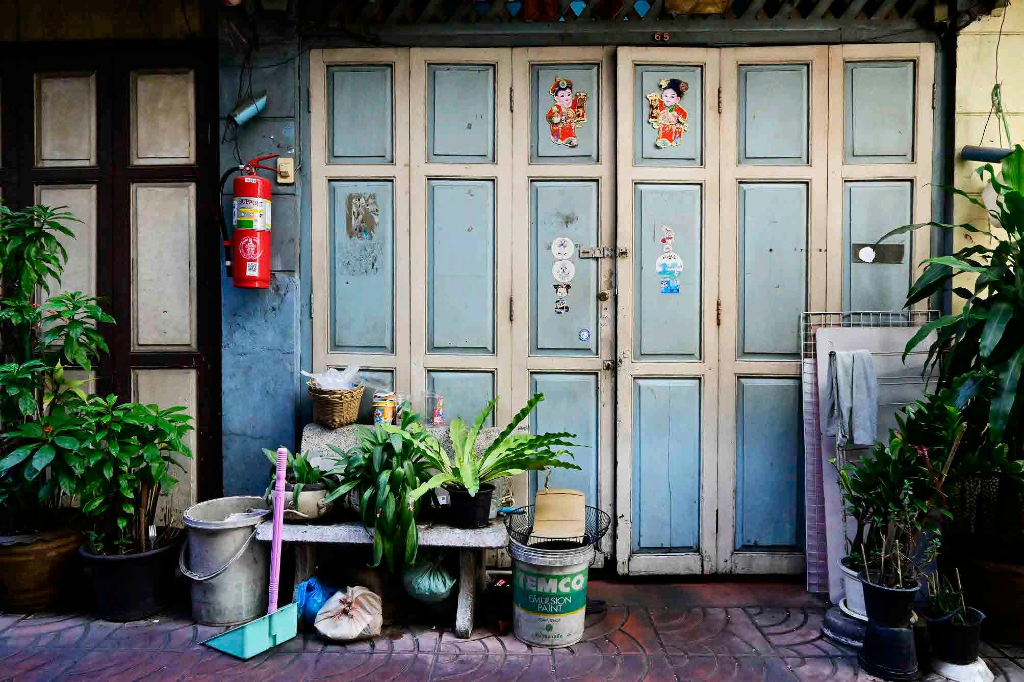 Nos últimos tempos tem sido comum a cena de antigas casas e galpões na rua Song Wat passando por reformas e reestruturação, ganhando ares descolados mas mantendo um pouco da natureza tradicional de Samphanthawong, especialmente na arquitetura - as portas com esses temas retangulares.
