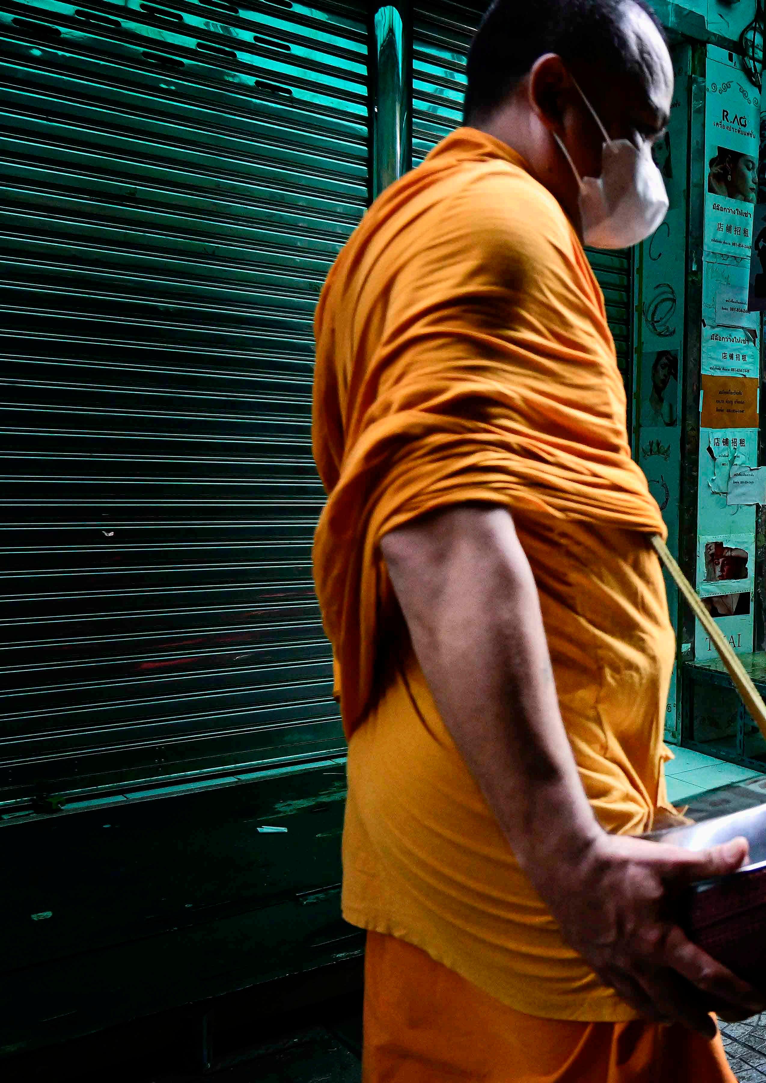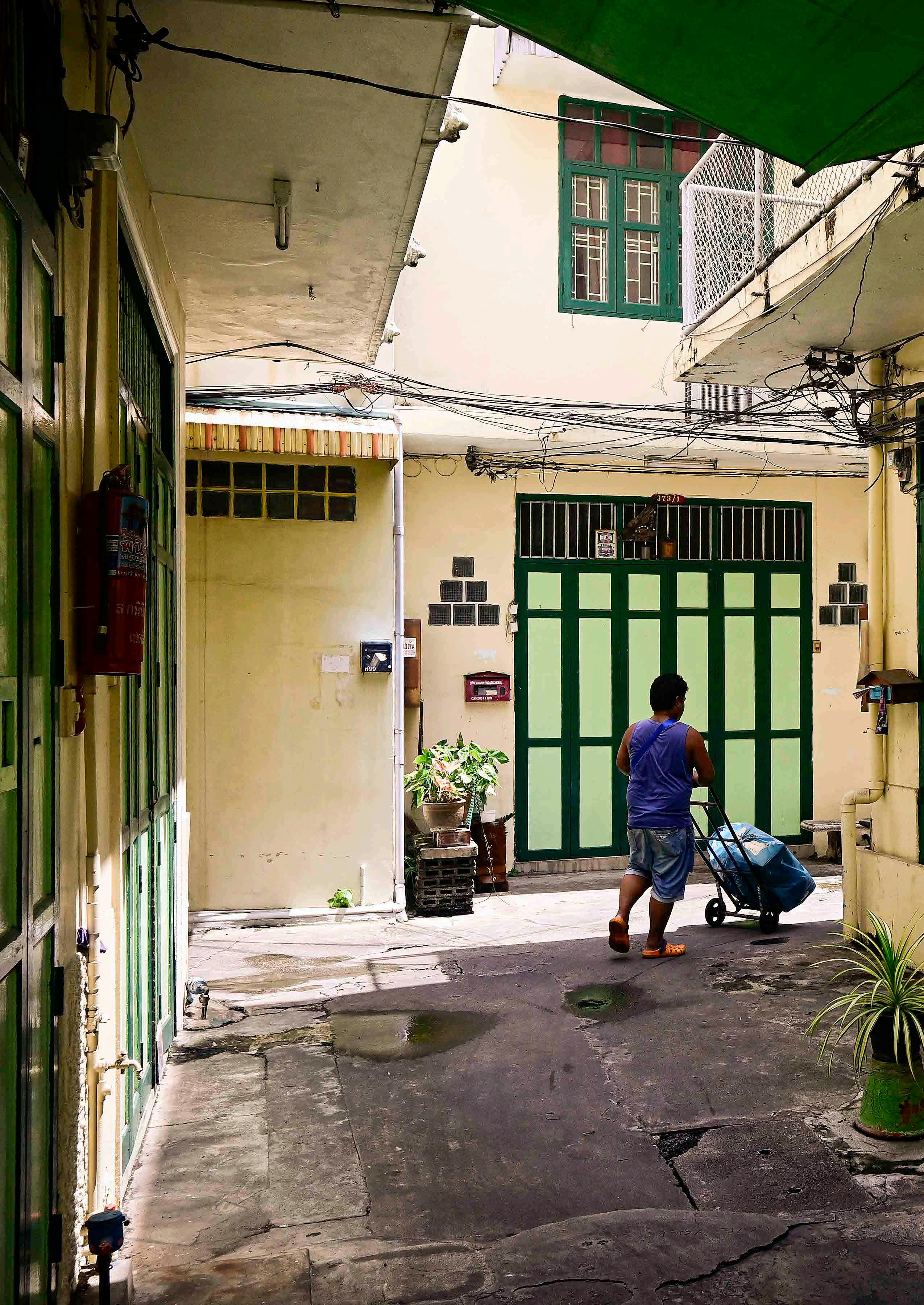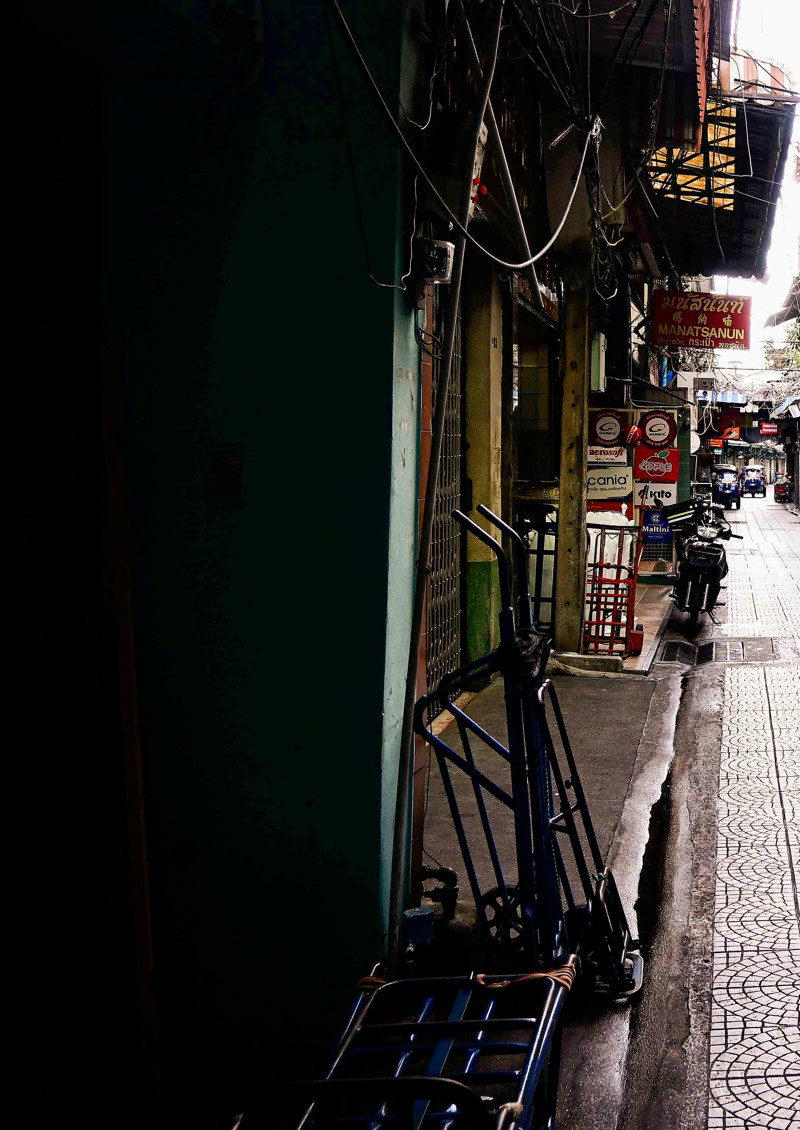 Mas há vielas tranquilas e silenciosas (na medida do possível), onde podemos encontrar homens sentados lendo jornal ou assistindo algo no celular. Um gato aqui, outro ali, andam sorrateiramente até um homem passar carregando caixas de um depósito até o mercado. Nas primeiras horas da manhã, monges budistas circulam coletando doações no ritual da ronda das almas – mostrando que a cultura tailandesa também faz parte da vida dessas pessoas.