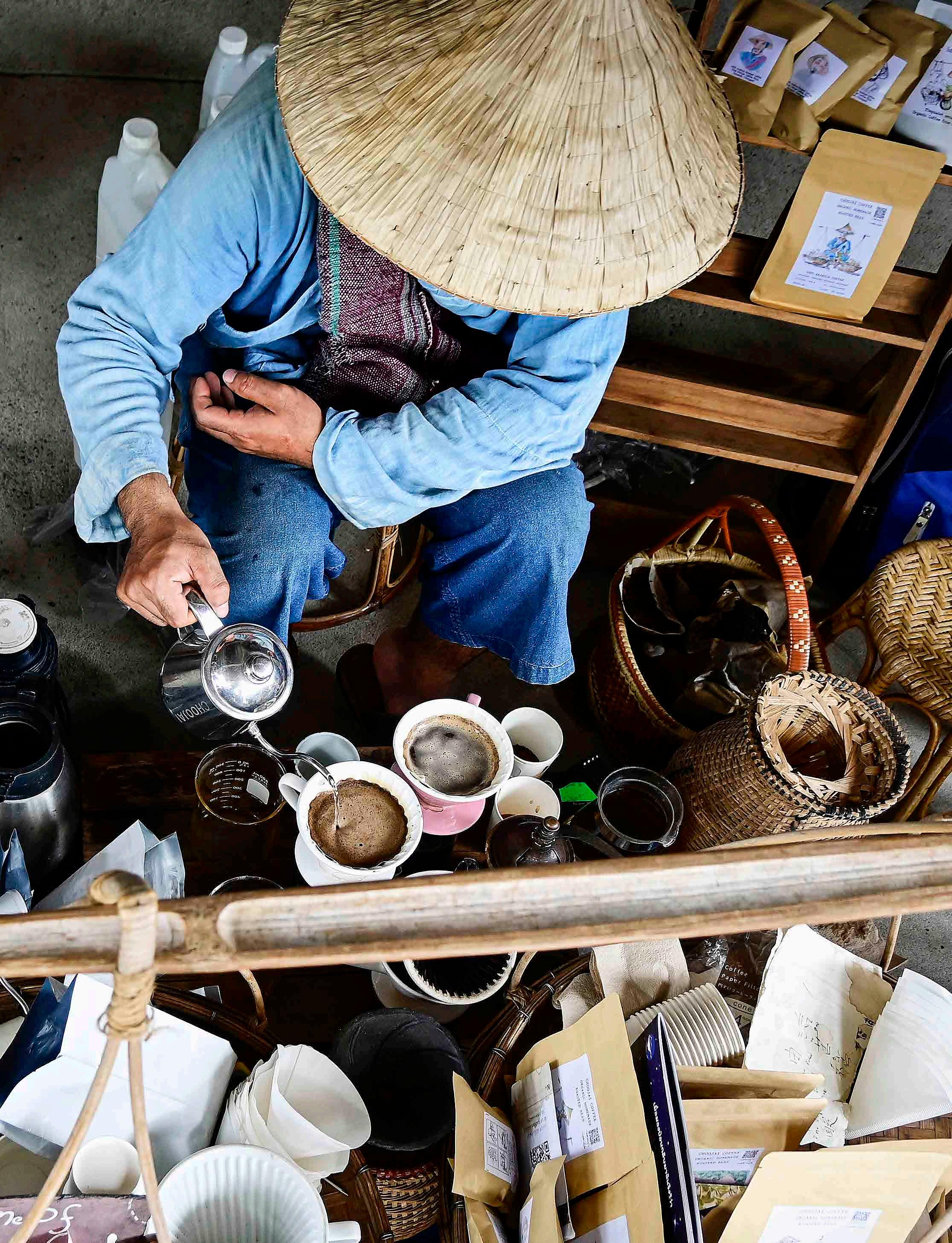 Um exemplo é o mercado Jing Jai, em Chiang Mai. Aberto aos fins de semana, ele atrai turistas de todos os lugares por causa de comidas e roupas descoladas, mas pode-se encontrar também este vendedor de café vietnamita.