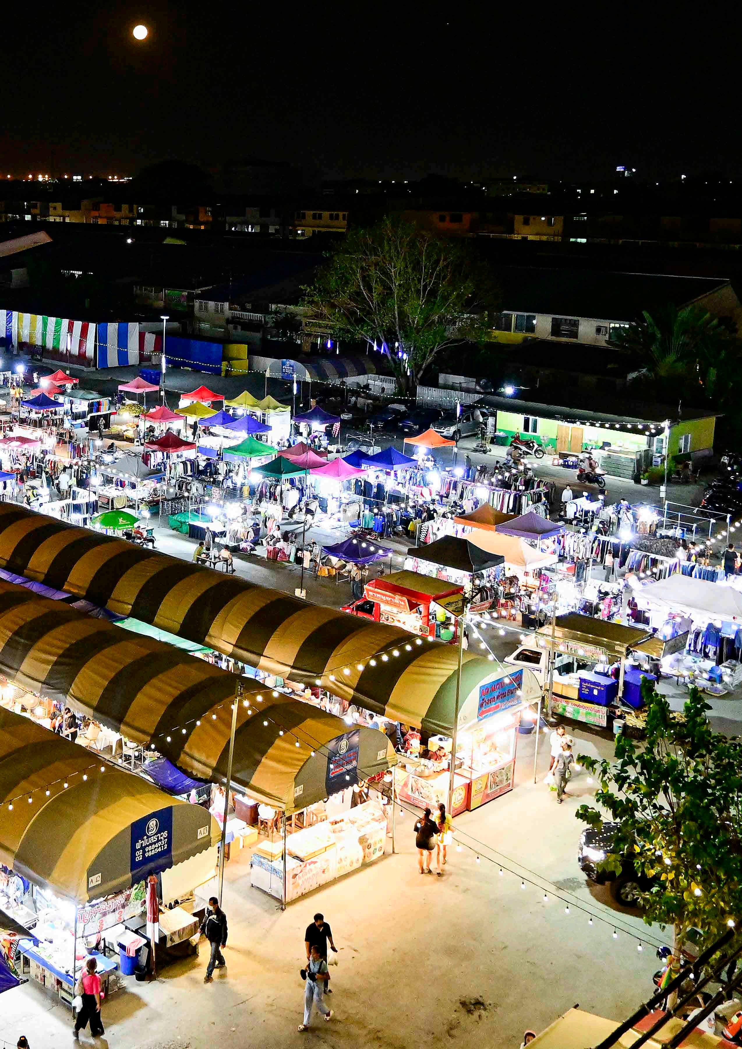 Chang Chui Night Market, um dos inúmeros mercados noturnos na região de Bangkok. O conceito de mercado noturno é comum no sudeste asiático, e é uma alternativa de compras e socialização aos mercados diurnos que operam sob forte calor (ao redor dos 40ºC).