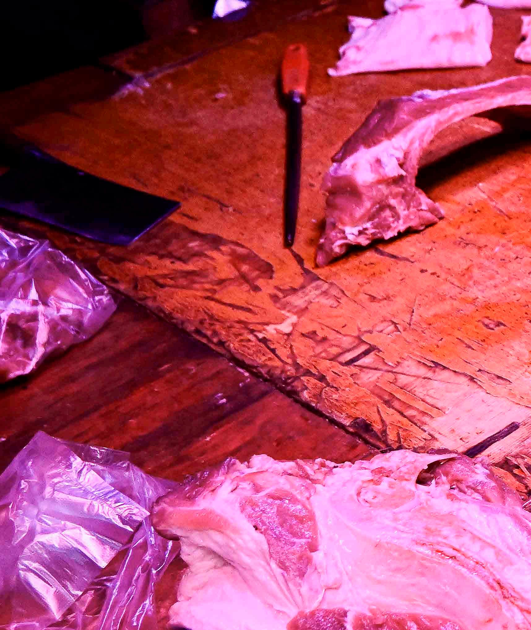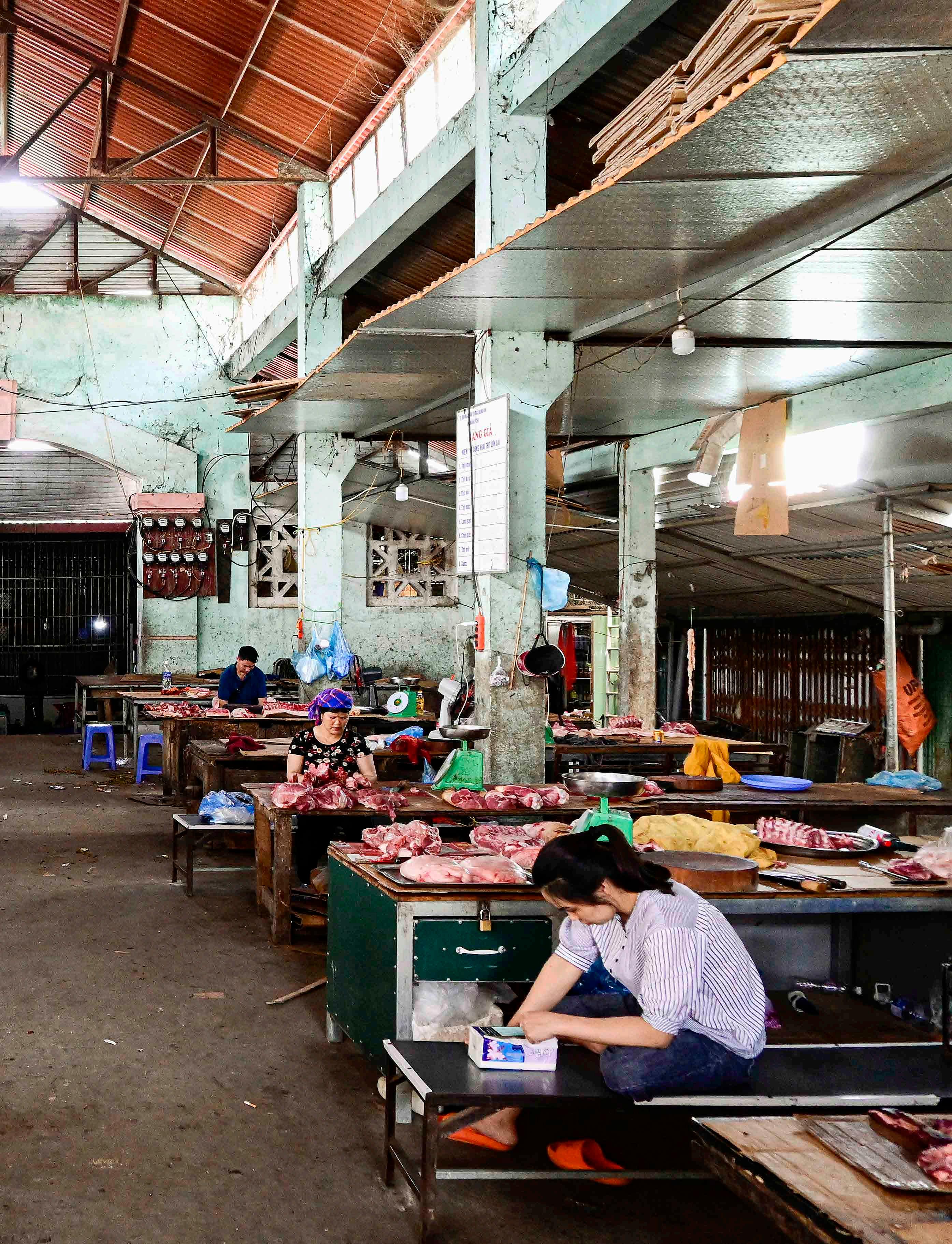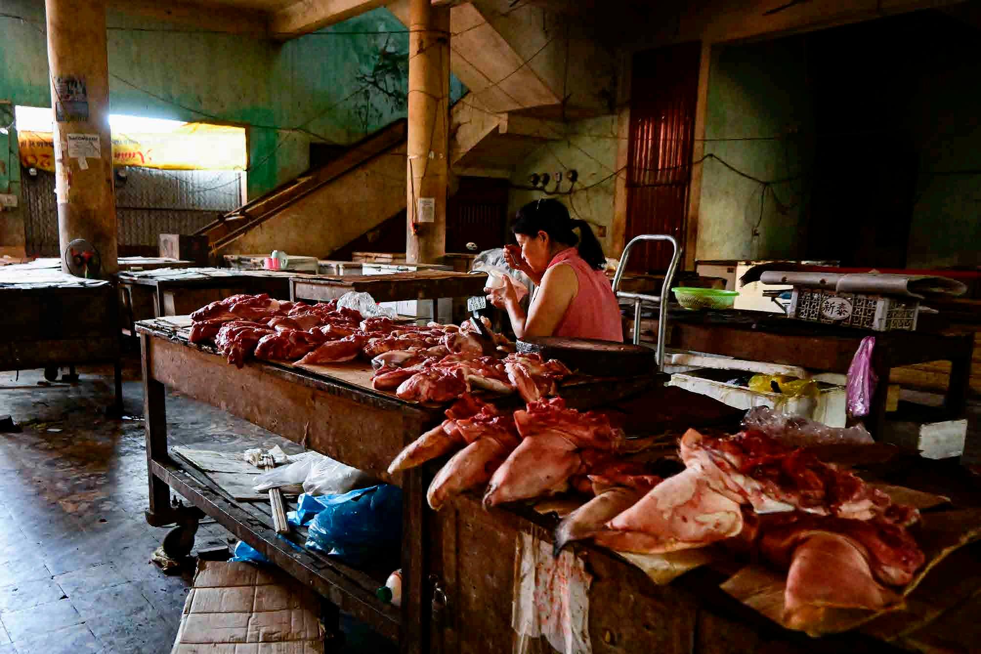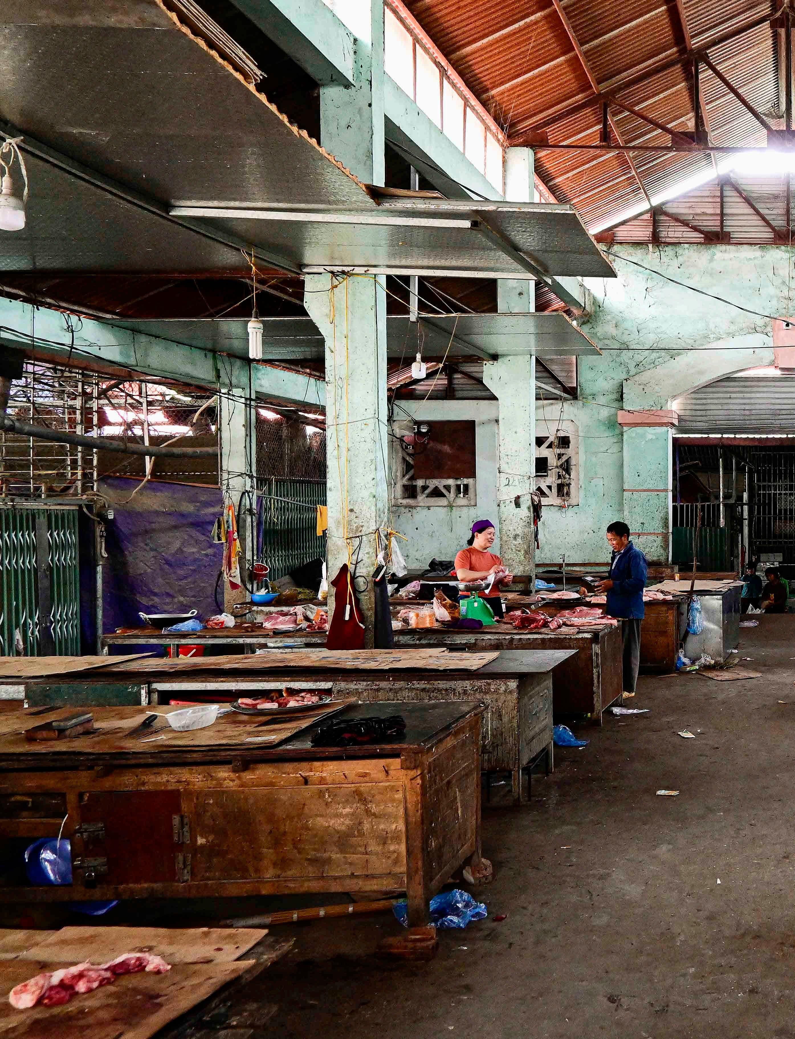 Açougue do mercado municipal de Dong Van. Com carnes expostas sobre bancadas de madeira, o padrão de higiene de pequenas cidades e vilarejos é praticamente inexistente, e isso pode ser muito chocante.