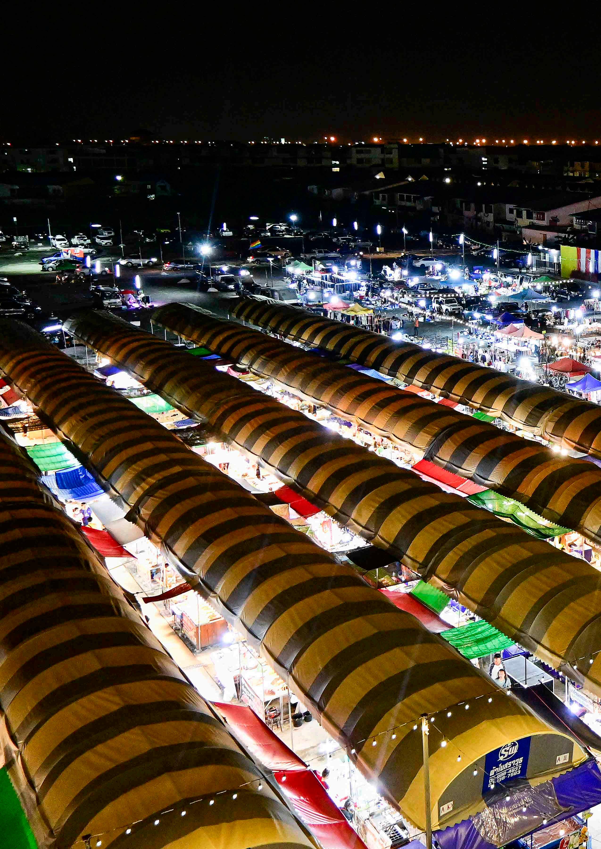 Uma cena típica de um mercado noturno, este em Samut Prakan, Tailândia. Os mercados noturnos são tradicionais em toda a Ásia, e apesar de alguns venderem produtos como roupas e utensílios, em geral são ambientes de socialização, com comidas e bebidas típicas, e que pelo caráter de “cultura tradicional” se tornaram atrações turísticas.