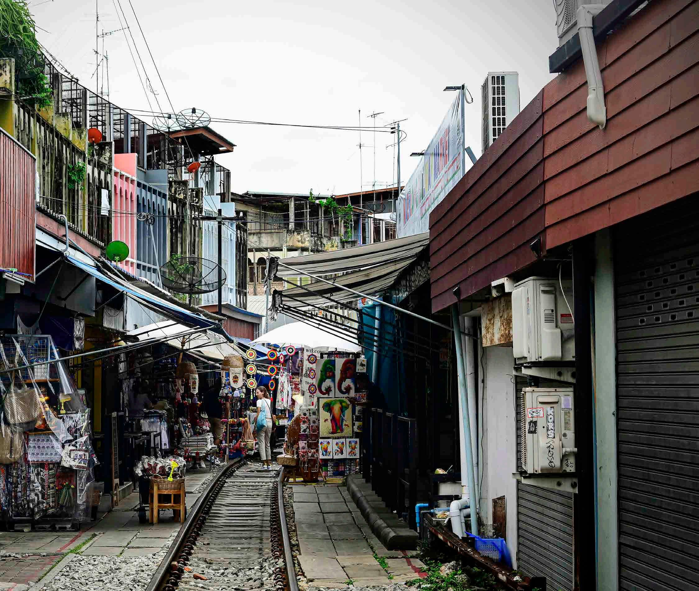Depois que o trem se vai e as tendas se fecham, vão-se os turistas, e o mercado e a cidade de Maeklong voltam a ser comuns.