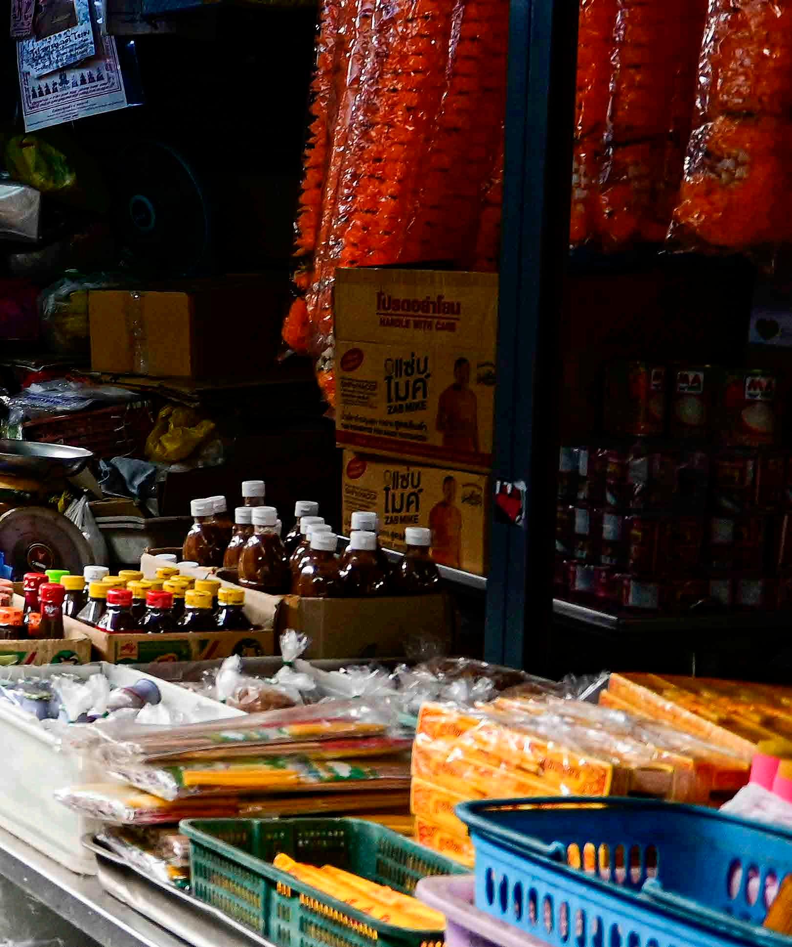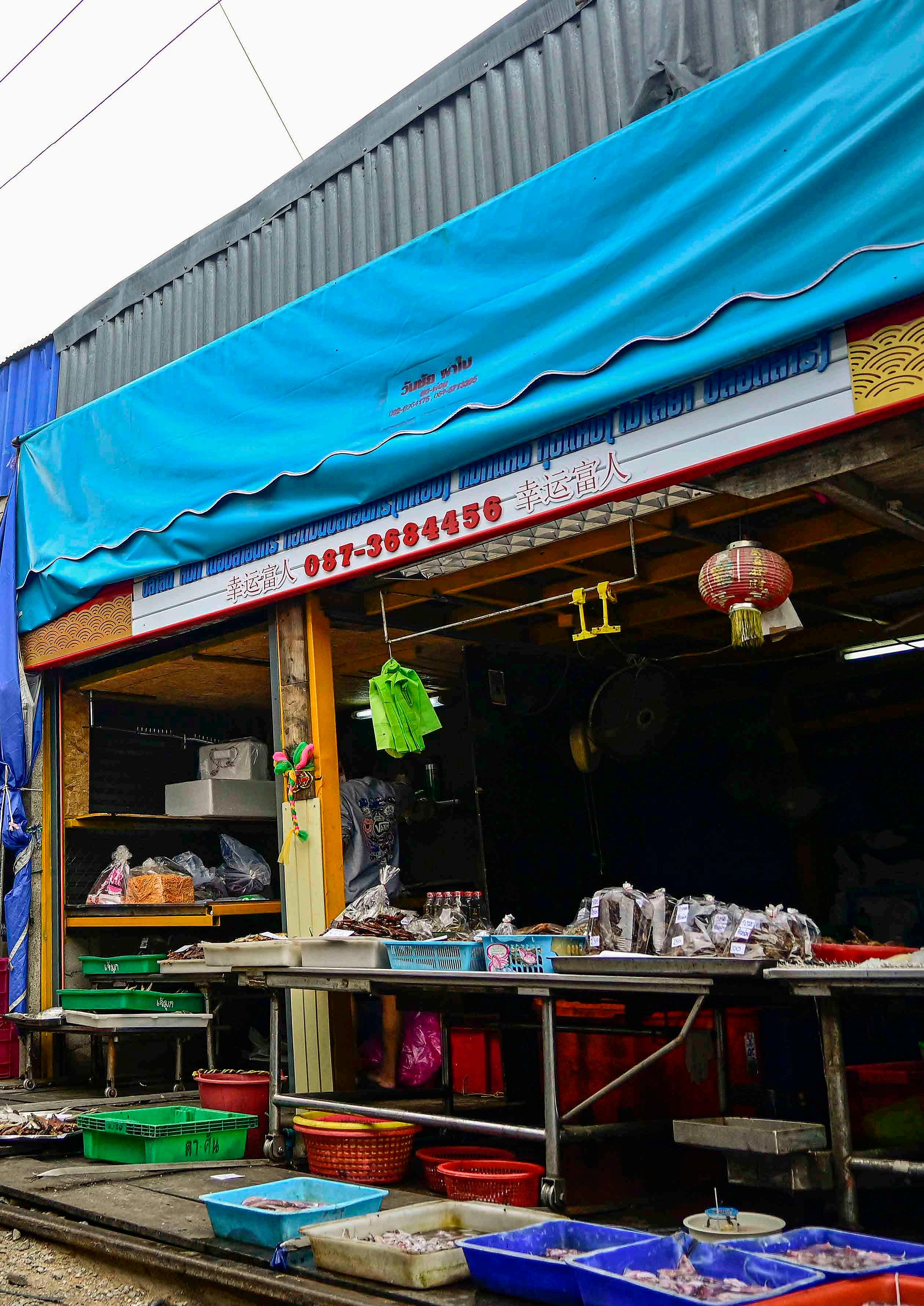 O mercado de Maeklong não é apenas turístico, serve também para o comércio dos locais. Mesmo nos momentos em que o trem não está por perto, é um mercado bem movimentado.
