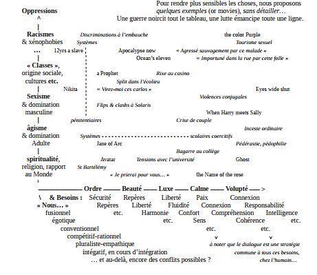 - l’axe des oppressions, qui ordonne en abscisse les dualités fondamentales à l’ouvrage,
