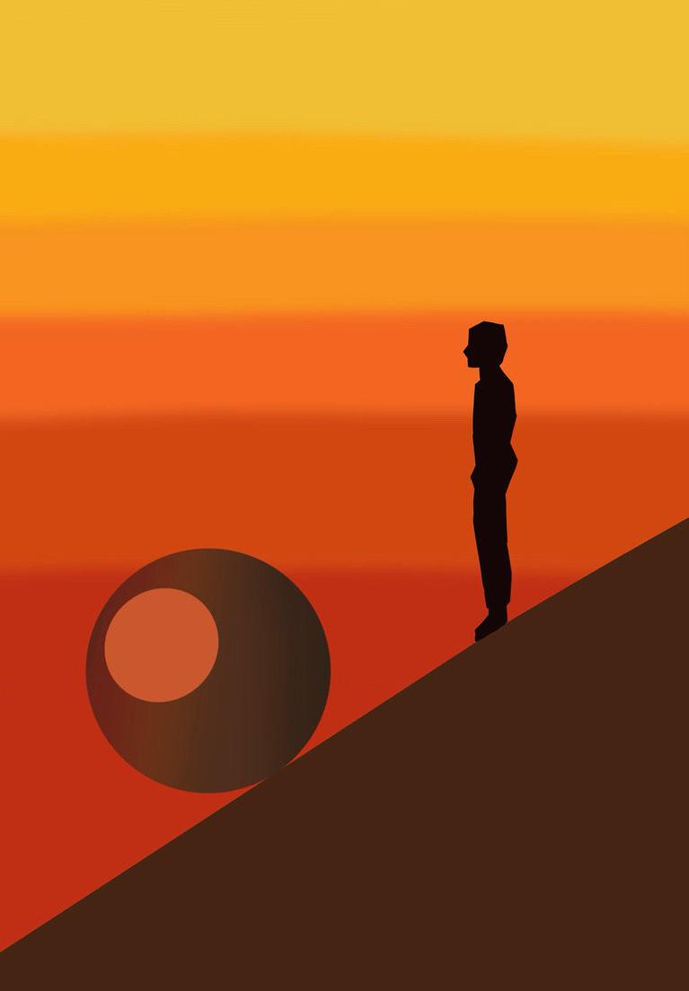 The sun he’s known forever, looms above Orange and fiery— The soul wants more.