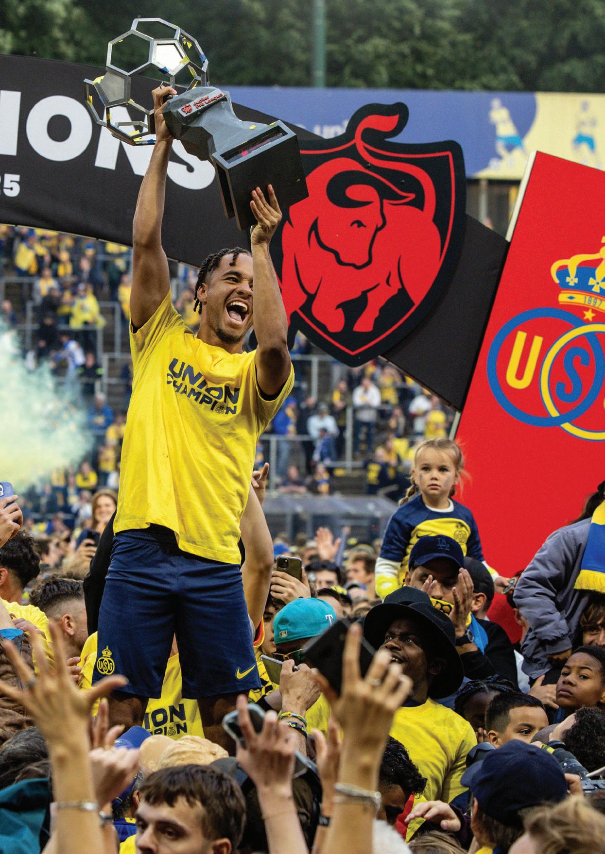 Royale Union Saint-Gilloise star Promise David celebrates with his teammates after securing the Jupiler Pro League title on the last day of the season. It was the first time Union had been Belgian champions since 1935. The club, whose Joseph Marien stadium is next door to Saint-Gilles, in Forest, only returned to the Belgian Pro League in 2021, after 48 years outside Belgium’s top tier. Next season, they will play the likes of Barcelona, Liverpool and Bayern Munich.