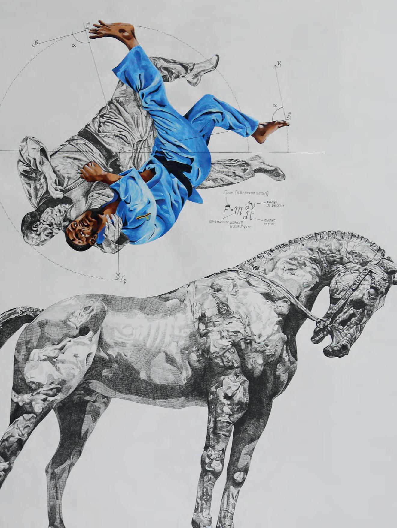 publisher : Karel Velle (RMCA) Márcio Carvalho. ‘Falling Thrones’ series. 2020. Statue: King Leopold II. Athlete: Patrice Lumumba. Drawing, micro pigment ink and acrylic on paper. Courtesy of the artist. With the support of Calouste Gulbenkian Foundation – French Delegation. 07.10.2022 05.03.2023
