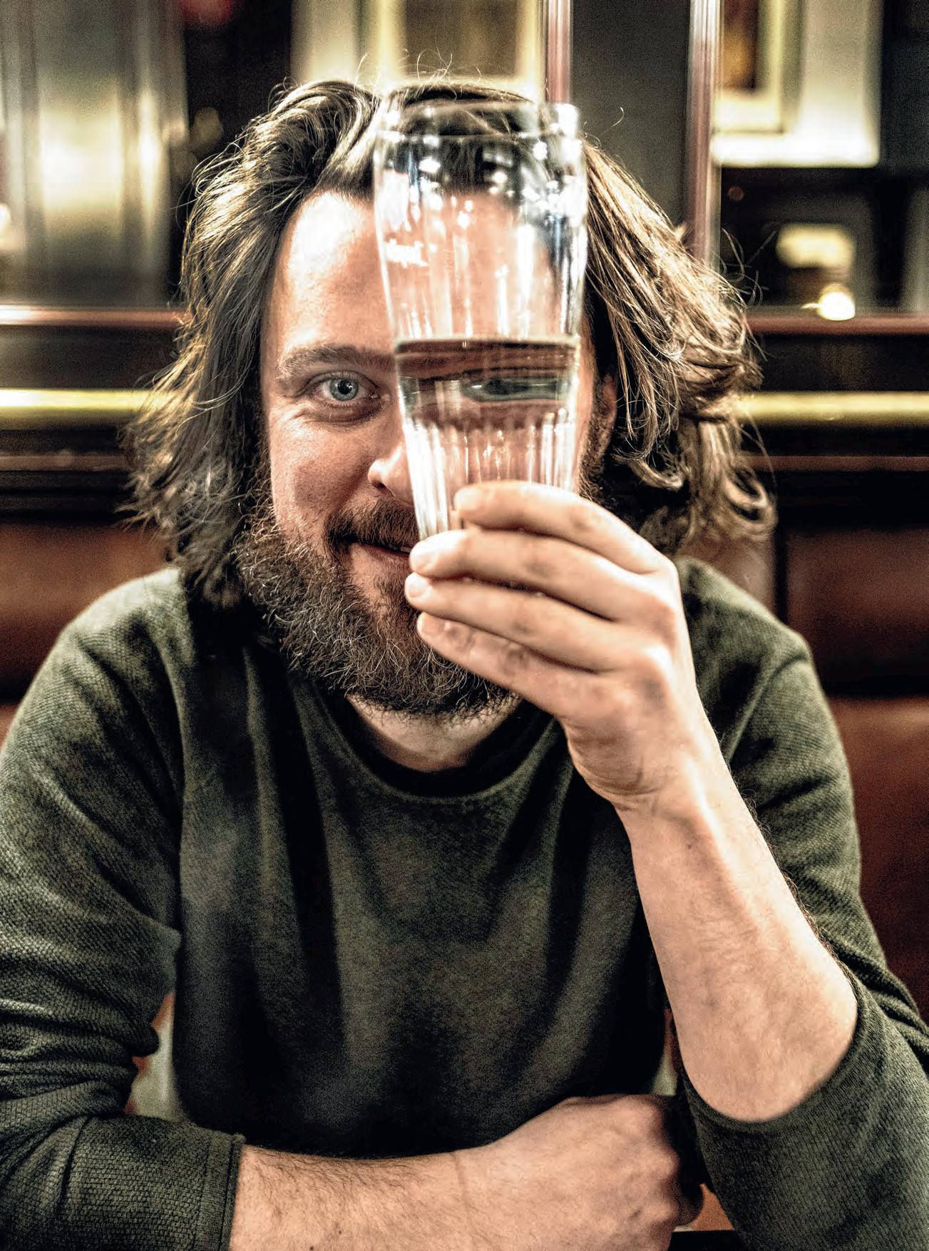 “Ik woon hier gewoon naast,” lacht Ambroos De Schepper van het kwartet Bandler Ching – de Homo Postironicus spot meteen een verwijzing naar Chandler Bing van Friends Moeder Lambic is zijn Peach Pit, bedenk ik wanneer hij aan de serveerster vraagt om hem te verrassen met een van hun in krijt op een bord gekalkte bieren. “Het aanbod is gigantisch, de kaart verandert voortdurend.”