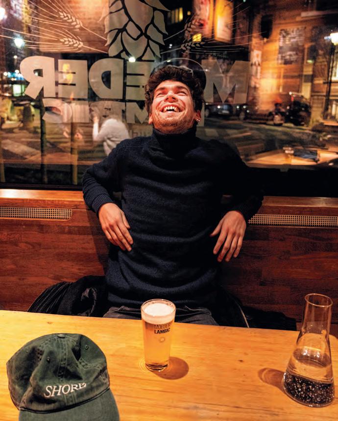 25 JANUARI 2023 | 3 12 ‘Als je vastzit, moet de politie het initiatief nemen. Dat gebeurt niet’ Na de dood van Sourour Abida in een politiecel 32 ‘Ik heb geen amore nodig om te zeggen wat ik mag aandoen’ Dani Klein is opnieuw fulltime Brusseles en wordt straks gelauwerd op de MIA’s 05 EDITO 06 HET GESPREK Kunstenaar Christophe Coppens kan niet zonder Brussel 10 IN BEELD Ivan Put 13 KORT GESPREK Yousra Dahry over het drarisme 15 BEELDCOLUMN Wauter Mannaert 16 COVER STORY Wanneer de wet dode letter blijft 22 BIJGEDACHTE Good Living 24 BIG CITY Wat is de stadslegende achter de fontein ‘Den Spauwer’? 24 BEESTIG BRUSSEL Wasbeer gespot in Woluwe 26 GEZONDHEID De nieuwe hipster drinkt geen alcohol meer 30 DE SLAAPKAMER van Dounia 36 NICK TRACHET Lichtmis 37 SELECT Dominique Deruddere komt met The chapel terug naar Brussel Eat & Drink Nina Smalltalk Ambroos De Schepper De vijf inzichten Marc Du Marais Barman Alex Deforce heeft de alcohol afgezworen. “Het machogedrag waaraan alcohol gelinkt wordt, wordt steeds minder aanvaard.”