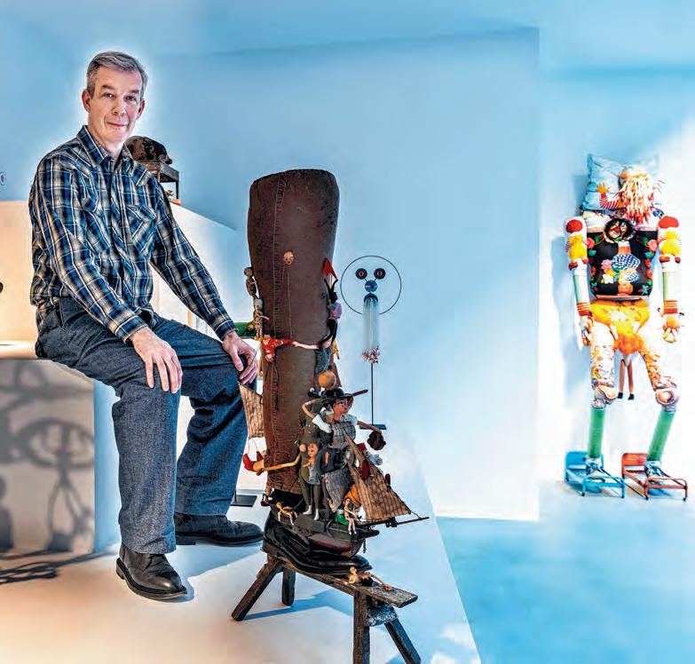 het ook met onbevangen spel. Alles wat ik vandaag doe, zie ik nog steeds als een manier van spelen. In mijn atelier staan drie grote tafels, bekleed met rood tapijt, waarop ik verloren voorwerpjes die ik verzamel uitstal. Elke dag speel ik er een beetje mee, soms gewoon iets verzetten of iets samenvoegen.