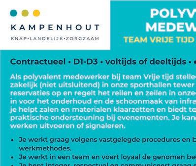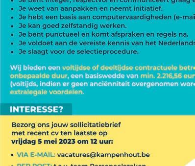Meer info? Kijk voor de volledige job- en profielbeschrijving, de voorwaarden en de selectieprocedure op www.overijse.be/jobs. Solliciteren kan tot en met 16 mei 2023.