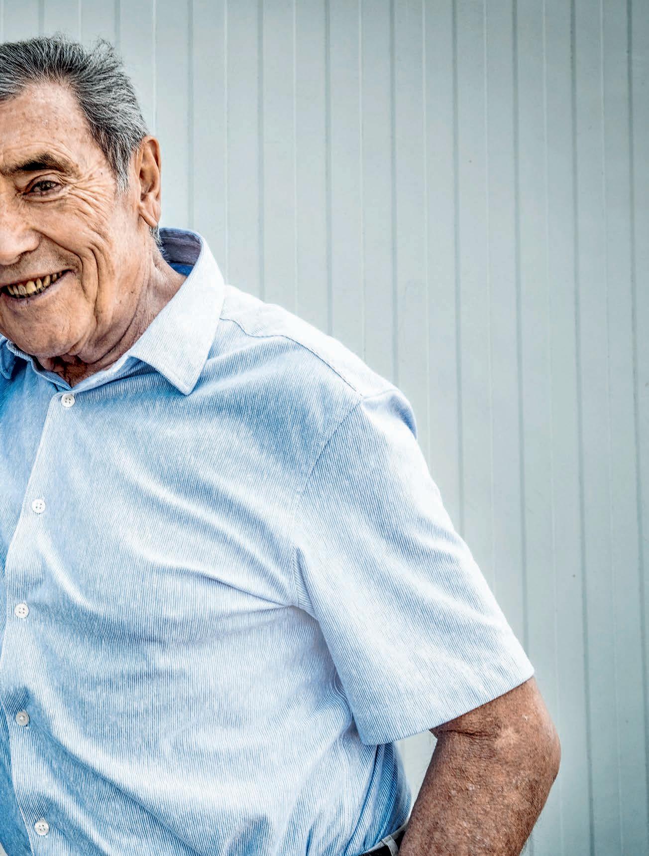 MERCKX: Ik spreek niet veel over het verleden. Het zijn de mooiste bladzijden van mijn leven geweest: ik kon van mijn hobby mijn beroep maken. Maar het is niet dat ik de hele tijd aan die tijd terugdenk, aan die glorie. Dat is vergankelijk. Twee voeten op de grond, zo ben ik opgevoed. En met respect voor iedereen.