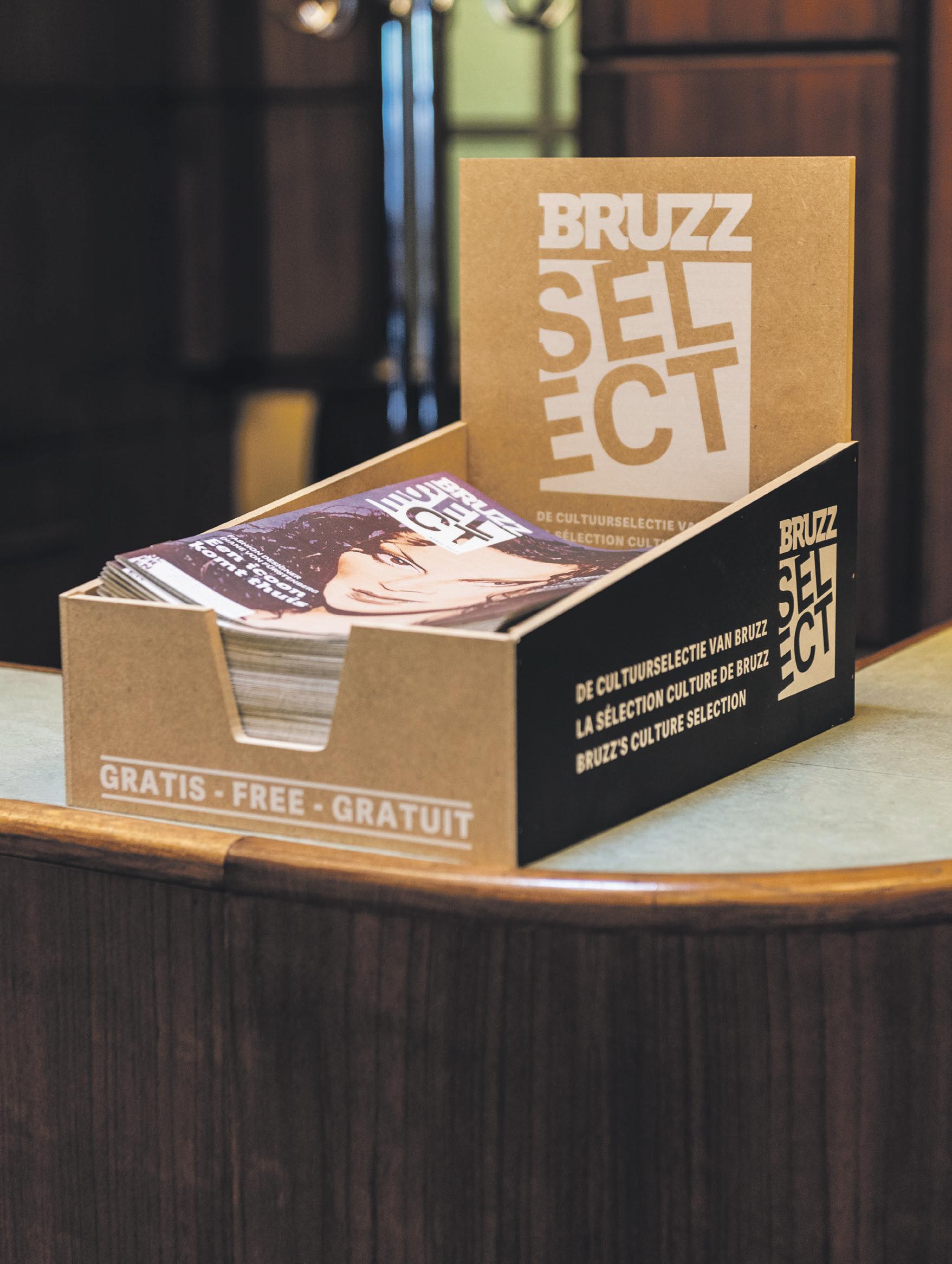 BRUZZ Select magazine maandelijks cultuurmagazine DRIETALIG NL~FR~EN gratis bij een abonnement op BRUZZ magazine of mee te nemen in meer dan 100 cultuurhuizen in de stad. Neem een abonnement op BRUZZ.be/abo BRUZZ Select is het cultuurlabel van BRUZZ over alle BRUZZ media heen. BRUZZ Select staat voor een schat aan cultuurtips op BRUZZ radio, televisie, social media, online en in onze magazines. Flagey