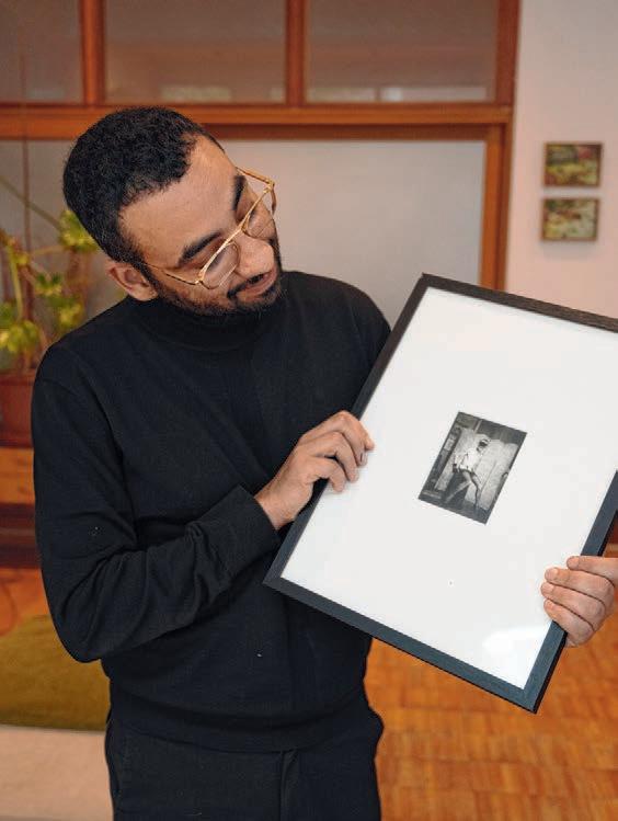 FR/ L’artiste franco-marocain MehdiGeorges Lahlou est basé à Bruxelles depuis 2007. Avec son œuvre, il explore l’identité (de genre), la religion, la physicalité, les conflits et la géopolitique. Il nous montre un autoportrait de Pierre Moulinier, la première œuvre d’art qu’il a achetée lorsqu’il était étudiant, et une grenade, un leitmotiv dans son travail. Et encore une corde à sauter, du charbon de bois (son outil de travail) et une banane, fruit symbolisant à la fois l’histoire coloniale et le changement climatique.