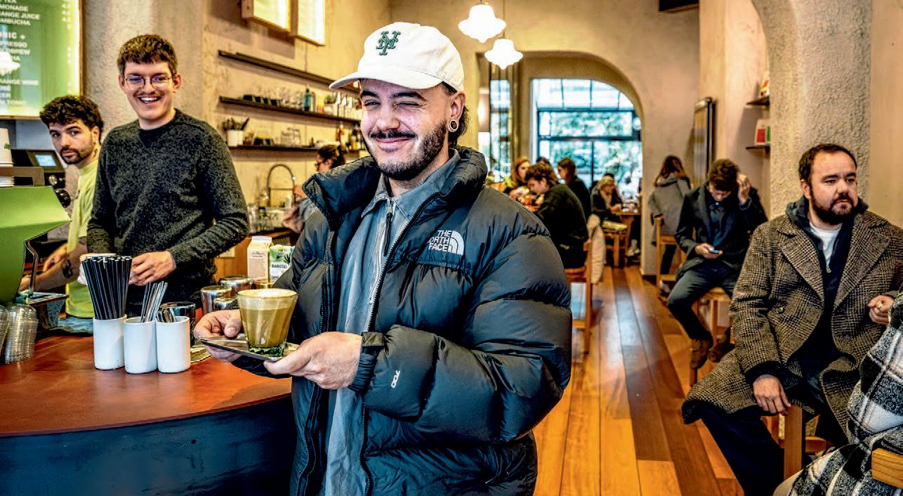 De hereniging lijkt Bassel Abou Fakher vleugels te hebben gegeven. Zijn tweede zaak, zo’n honderd meter verderop in de richting van het Stefaniaplein, is indrukwekkend. De grote ruimte, die opent met een toonbank waarachter het specialty coffee-aanbod van Wide Awake Coffee prijkt (4 tot 4,70 euro), bezit heel wat zitplaatsen. Het interieur is sfeervol aangekleed met houten meubilair, hetzelfde geldt voor het prachtige terras achteraan.
