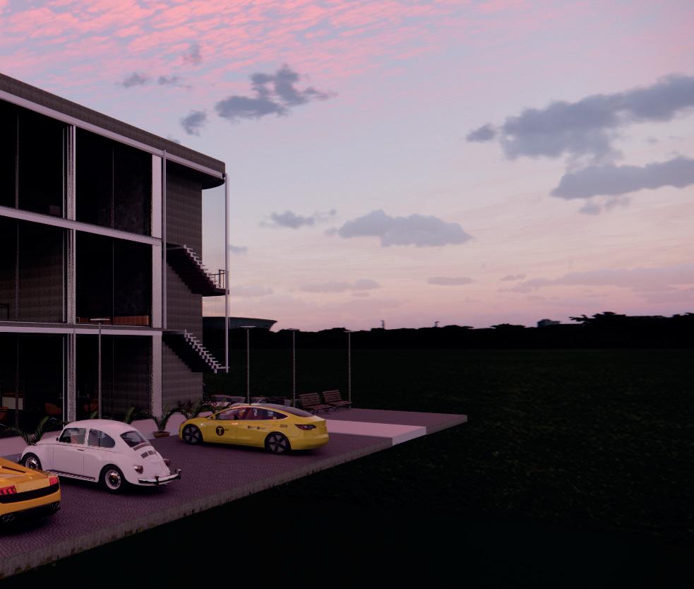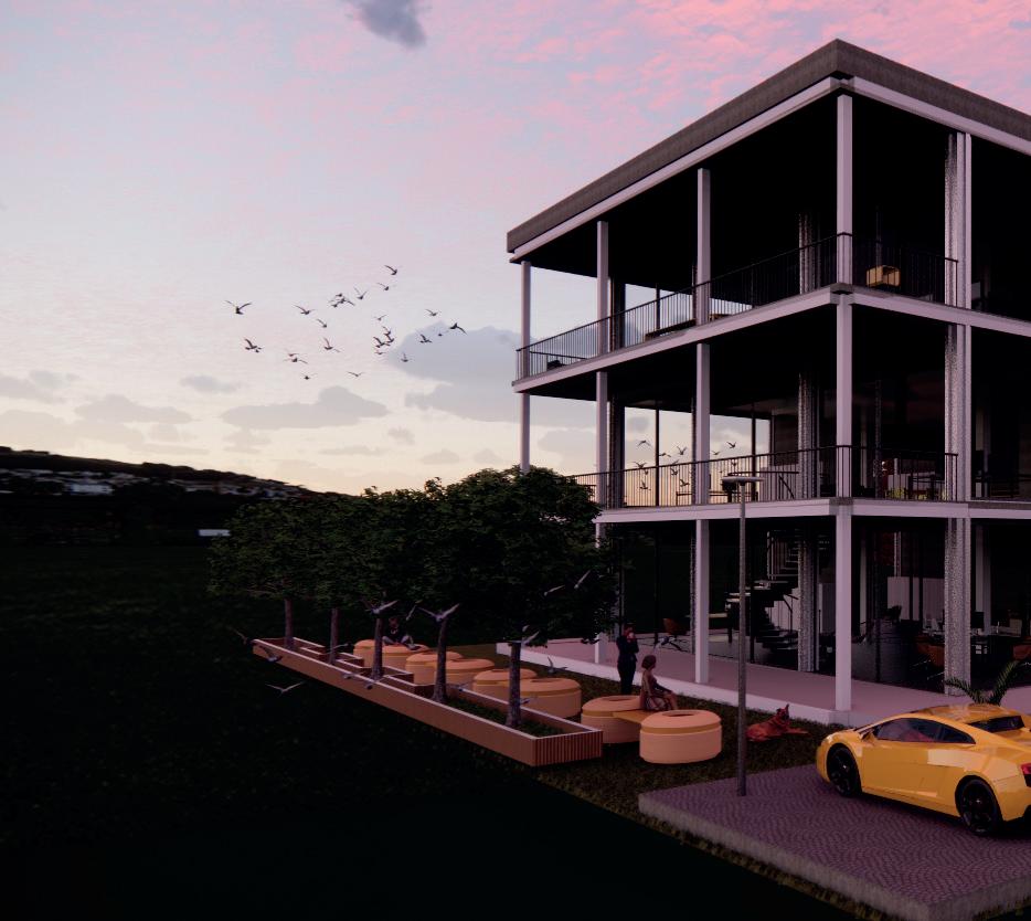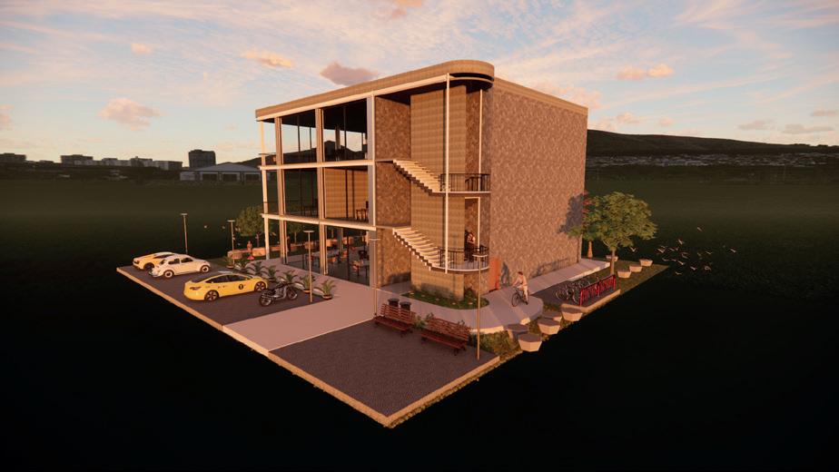 Se desarrolló un volumen de tres plantas basado en la geometría del terreno y en el futuro desarrollo selectivo del entorno de la nueva zona comercial circundante.