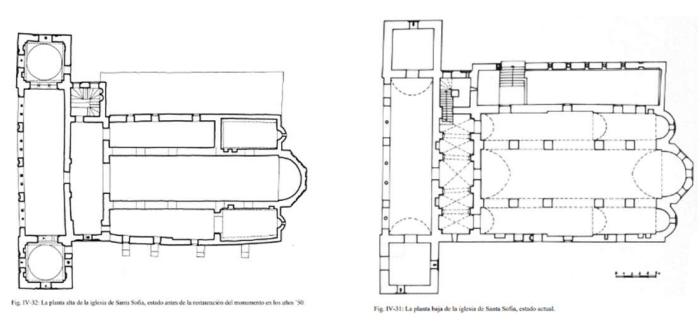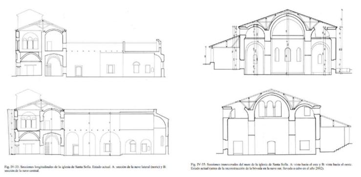 Para su restauración, fue necesario introducir 40 medios de apoyo y reducir el peso de la estructura Finalmente, se construyó una cúpula circular con una base cuadrada a través de piezas triangulares llamadas pechinas