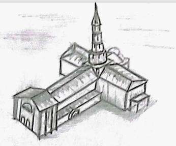Planta de cruz: un área central cubierta por la cúpula quedaba inscrita en un cuadrado de un tamaño sensiblemente mayor.