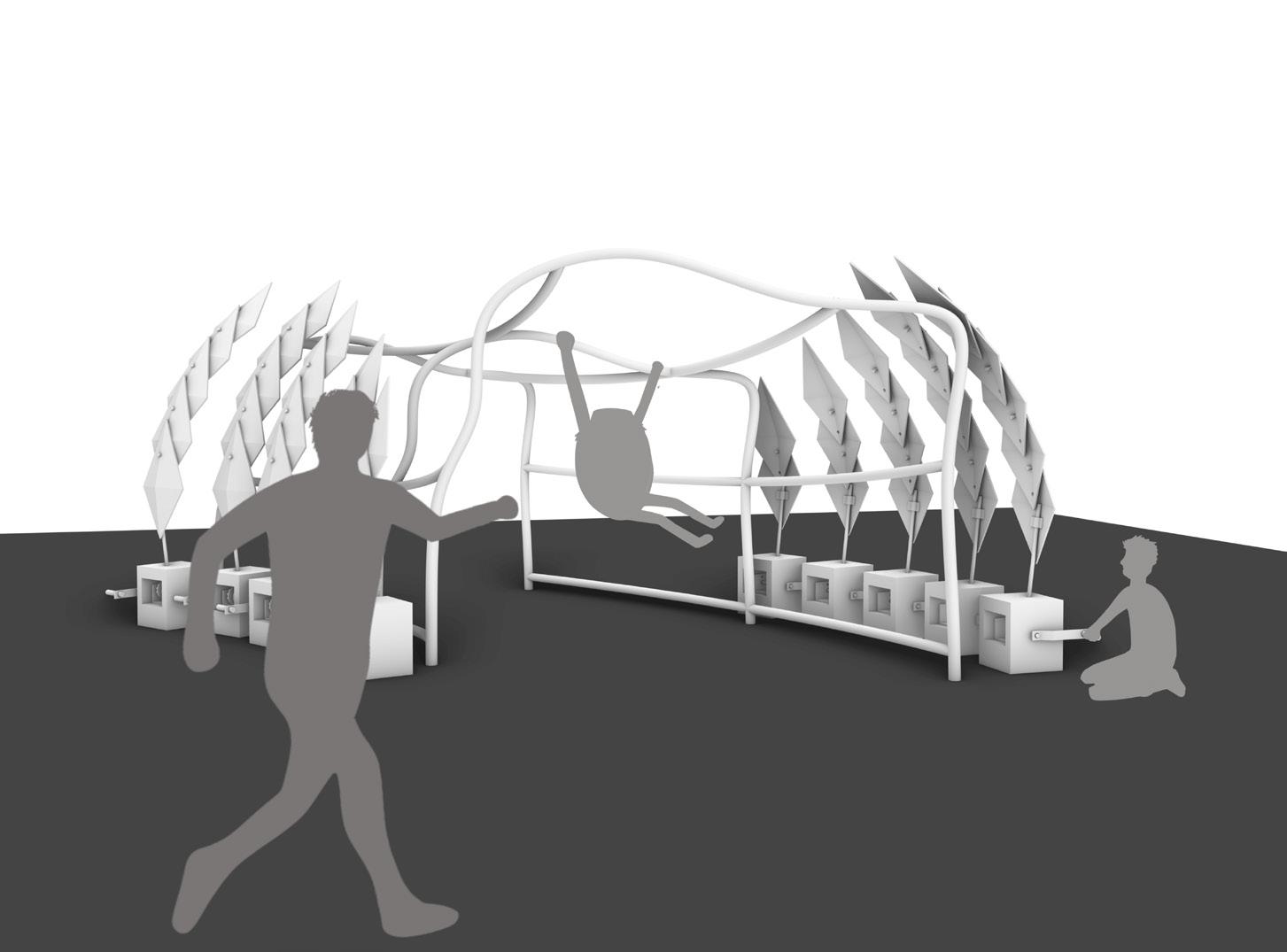 Konsep design berangkat dengan intensi untuk menciptakan suatu gubahan yang dapat evoke interaction & playfulness. Terinspirasi dari kegiatan monkey bar gubahan bentuk dibuat memanjang seperti tubuh naga sehingga saya menyebutnya dragon bar. (gambar 1)